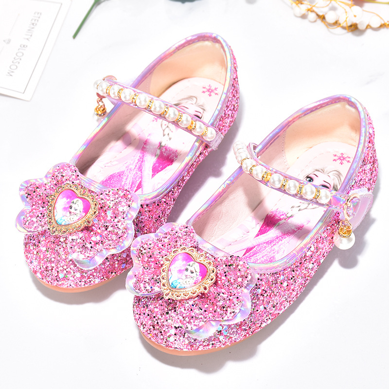 여자 작은 가죽 신발 공주 엘사 단층 신발 한국 스타일 부드러운 밑창 소녀 크리스탈 신발 무대 호스트 성능 어린이 신발스토어 가기