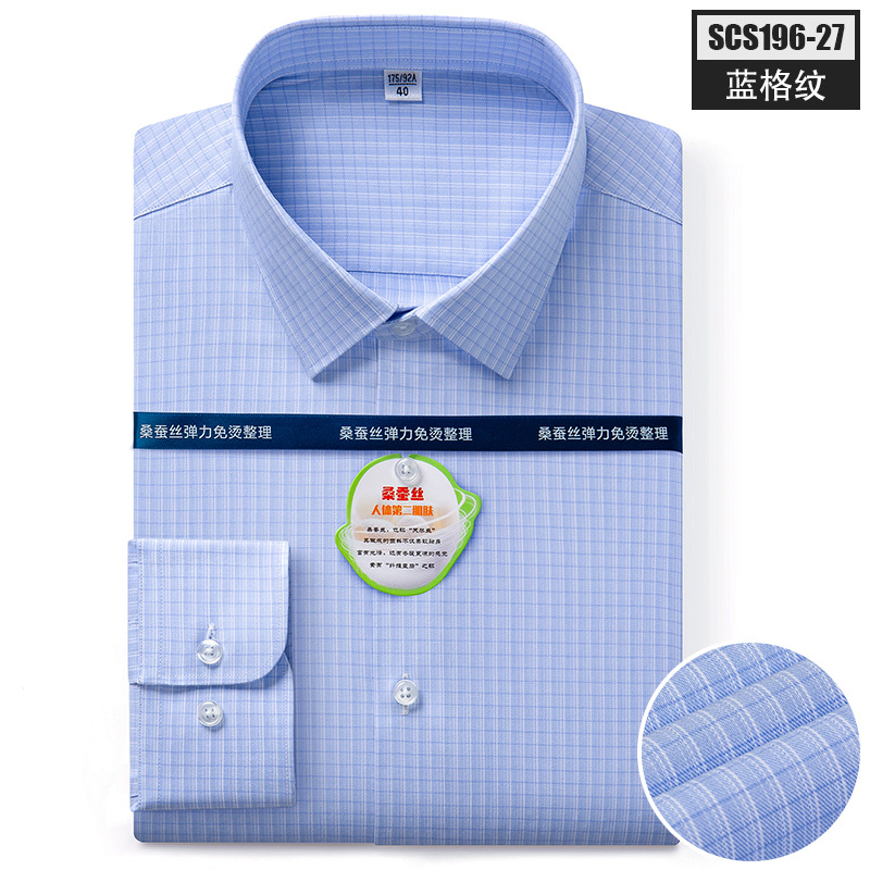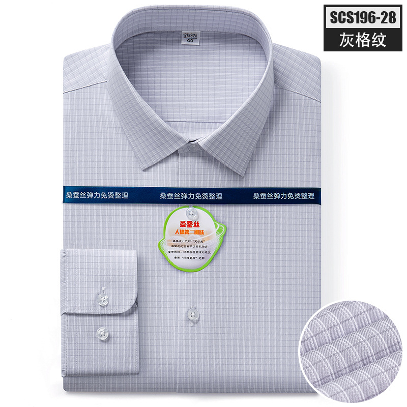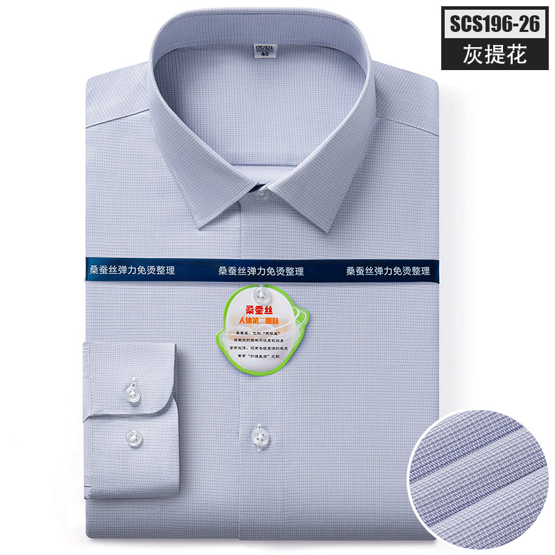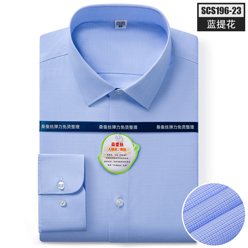 New 정품 고급 남성 뽕나무 실크 캐주얼 비즈니스 셔츠 Tencel 비 다림질 얼음 느낌 재고 셔츠스토어 가기
