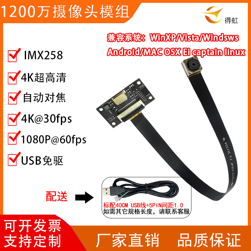 IMX258FPC 분할 보드 카메라 모듈 1 천 2 백만 화소 USB 드라이버-무료 4K 초고화질 비디오 촬영스토어 가기