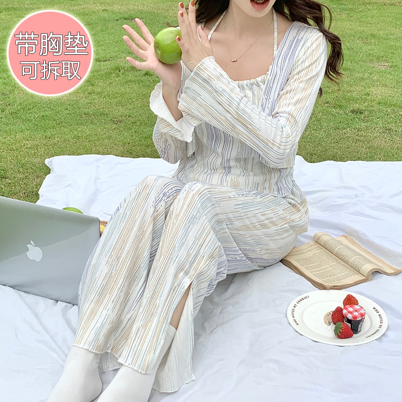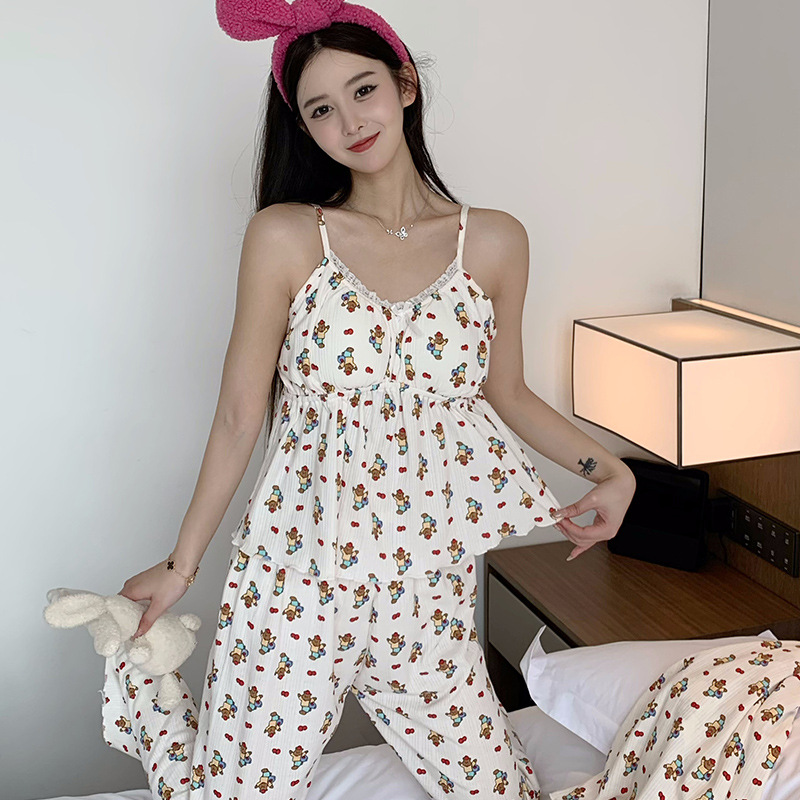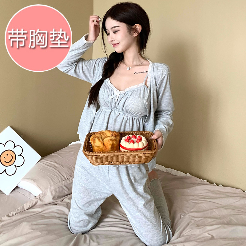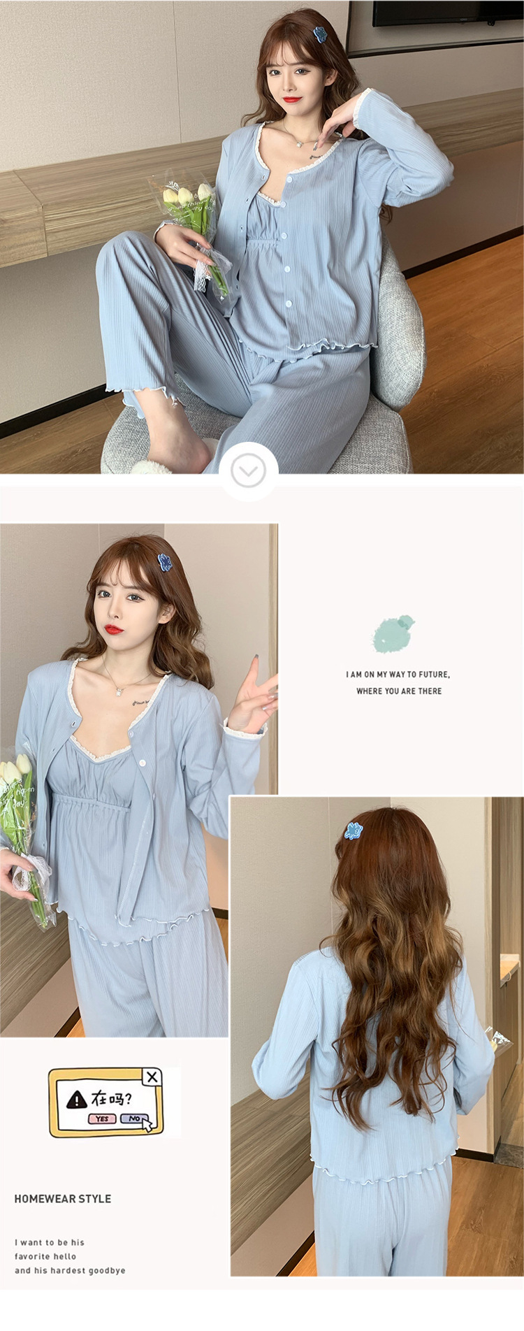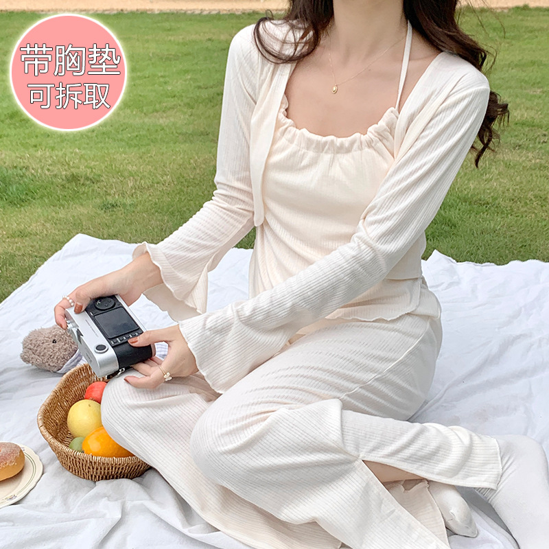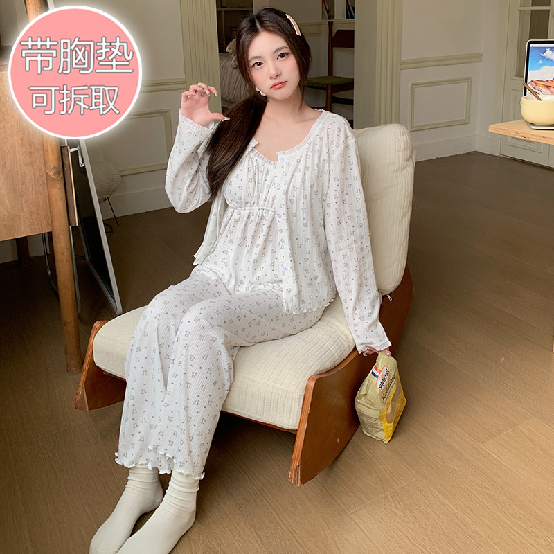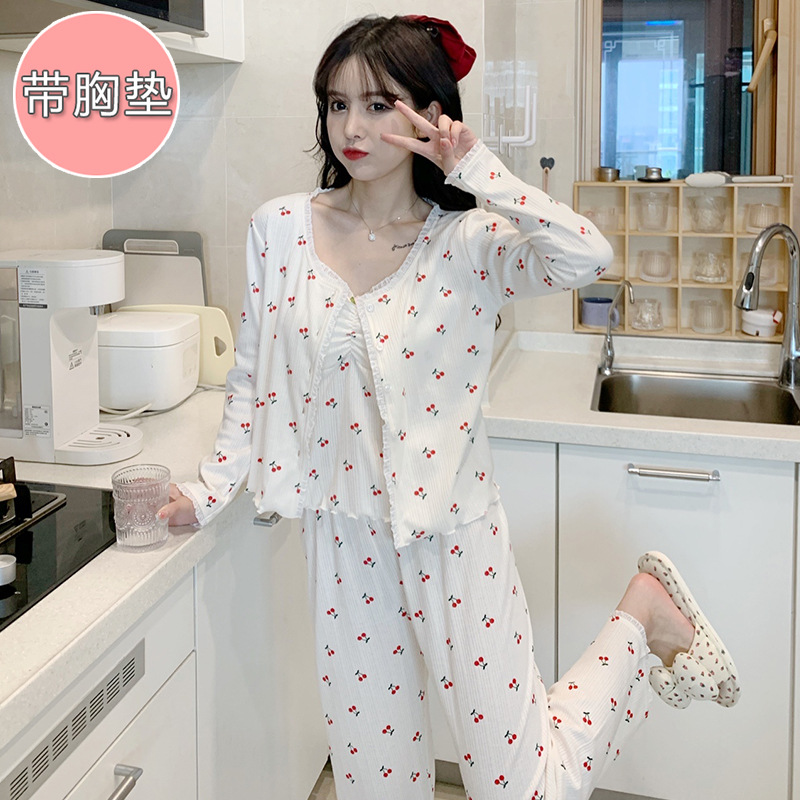 2025 봄 여름 신상 3종 세트 6535 면 패딩 탈착식 조끼 + 긴팔 + 바지 여성 잠옷