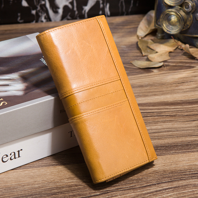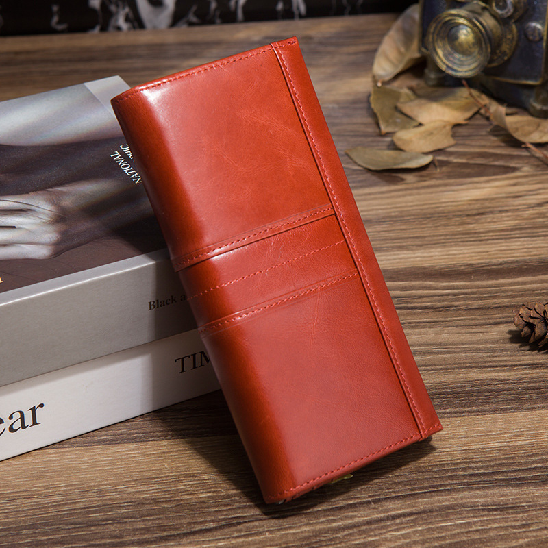크로스 보더 새로운 세트 클립 지갑 여성의 첫 번째 레이어 소가죽 롱 클러치 백 여성 가방 멀티 카드 홀더 휴대 전화 가방스토어 가기
