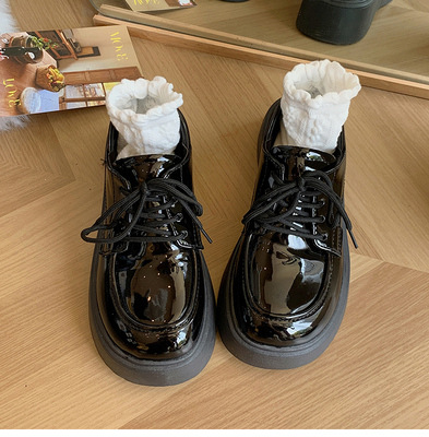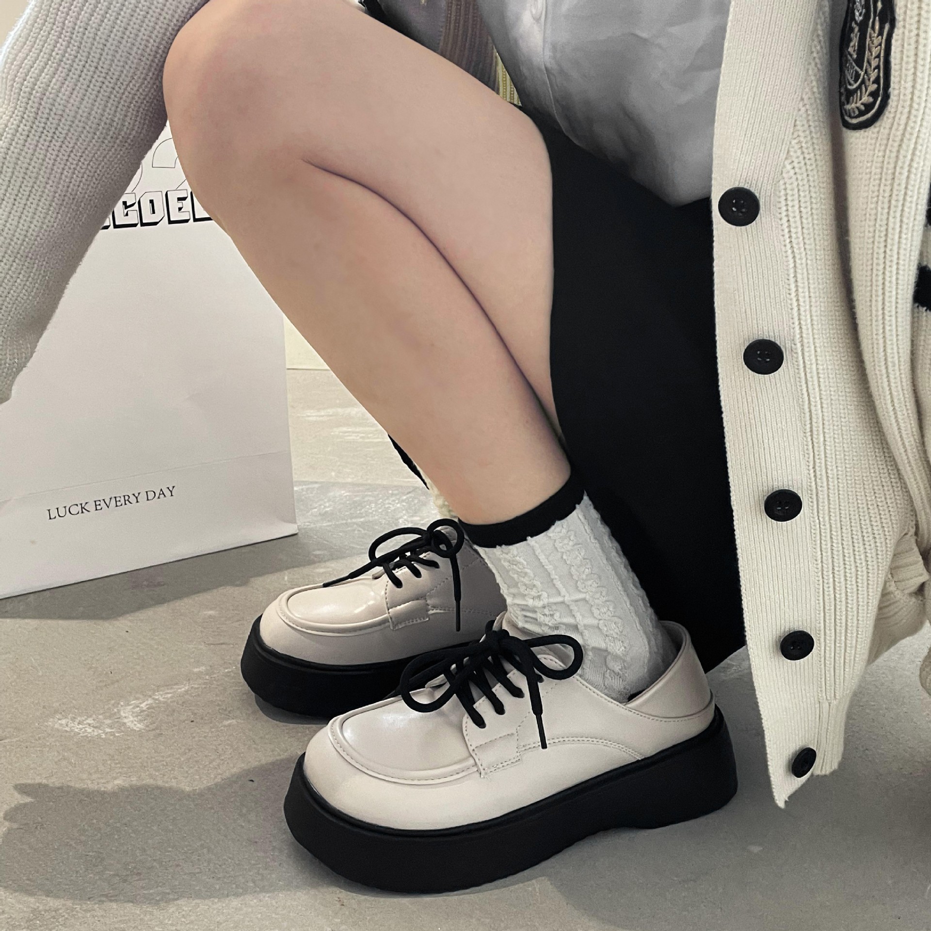 여성용 퀸스 스타일 가죽 신발 영국풍 2025 신상 봄 여름 학생용 빈티지 블랙 레이스업 JK 단화스토어 가기