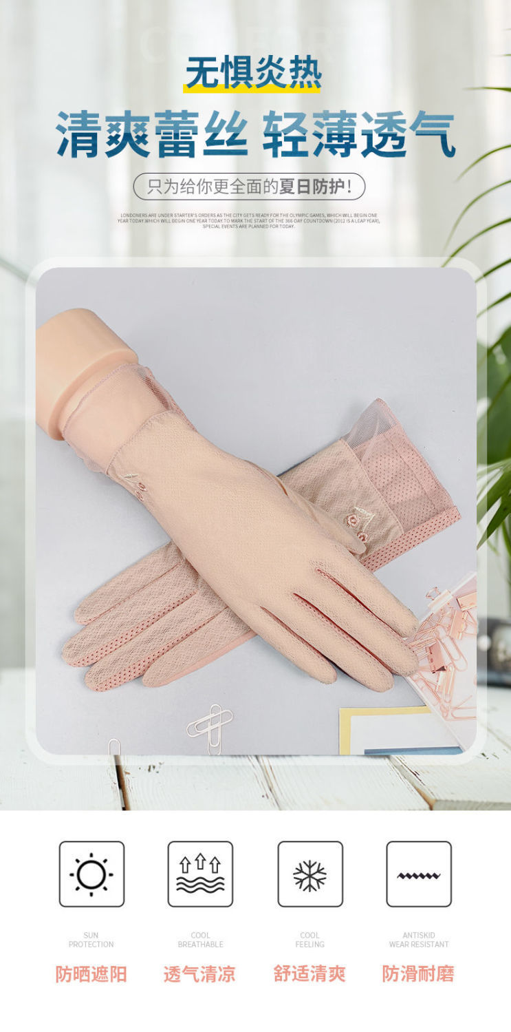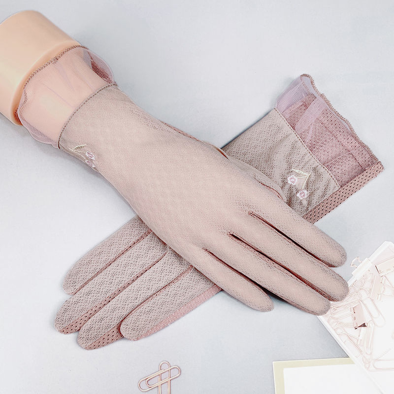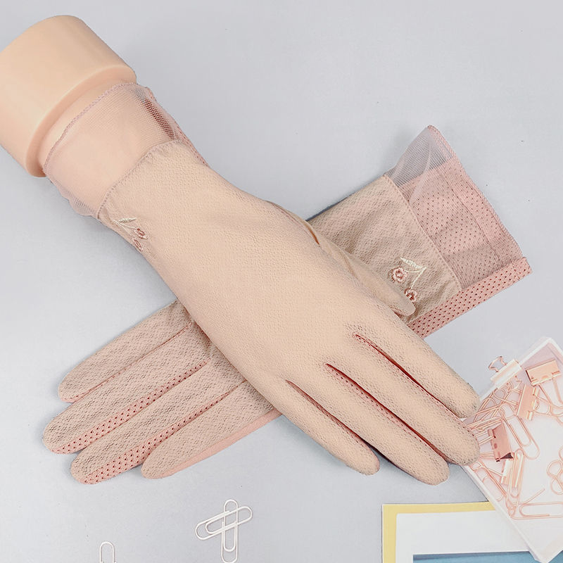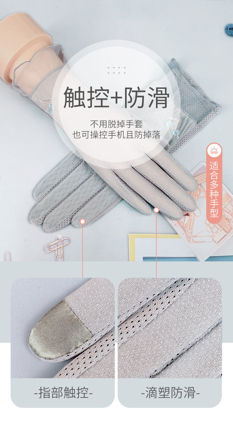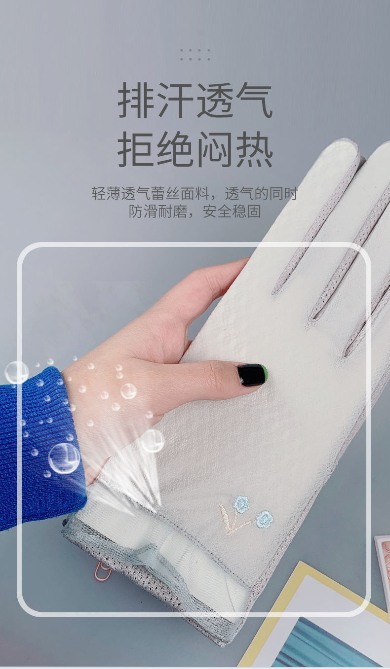여름 자외선 차단제 장갑 여성용 얇은 순면 통기성 자외선 차단 터치 스크린 미끄럼 방지 봄과 가을 운전 사이클링 전기 자동차스토어 가기