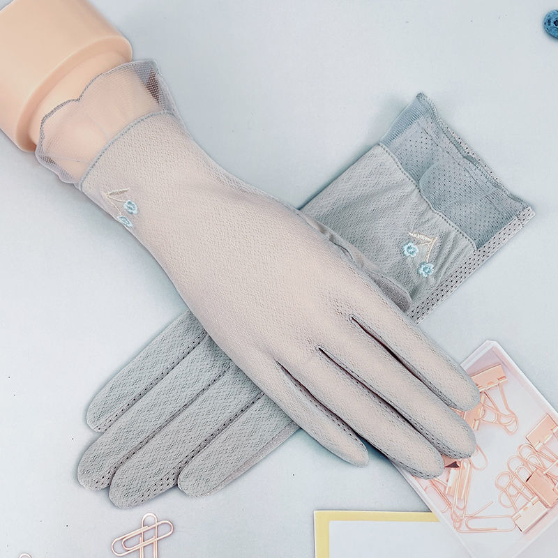 여름 자외선 차단제 장갑 여성용 얇은 순면 통기성 자외선 차단 터치 스크린 미끄럼 방지 봄과 가을 운전 사이클링 전기 자동차