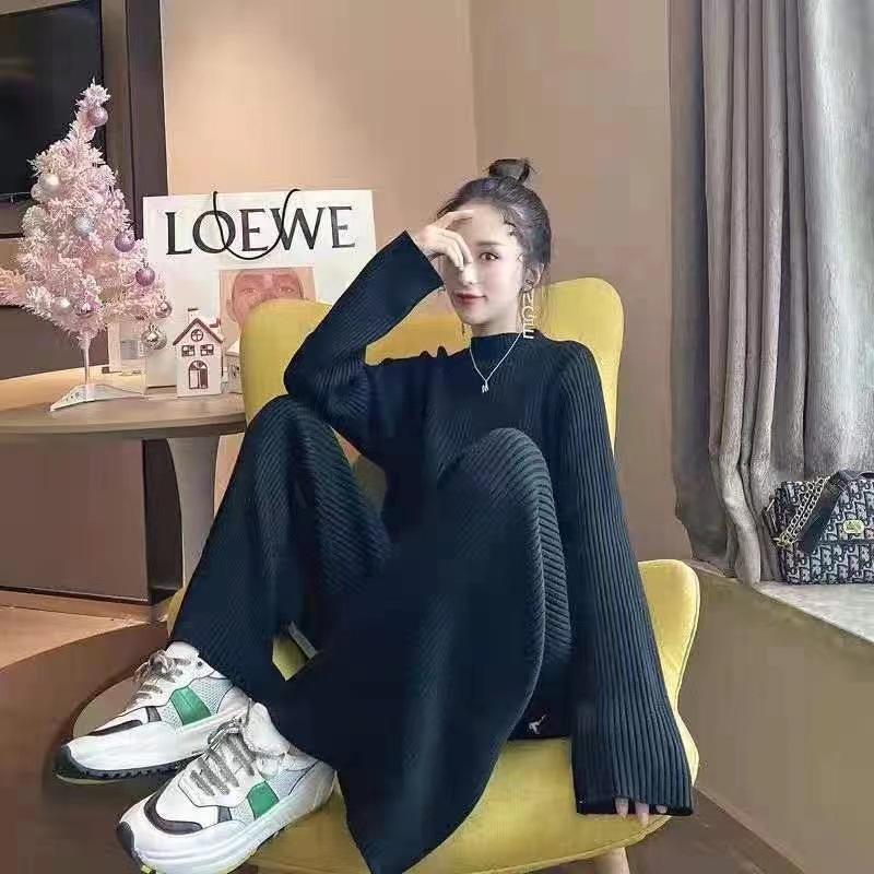 여성용 플러스 사이즈 투피스 슈트, 2025 가을 신상 패션, 고급 루즈 니트 스웨터, 와이드 팬츠스토어 가기