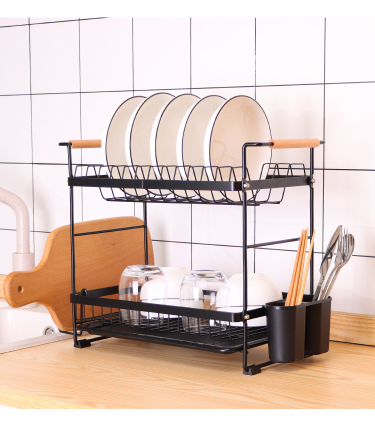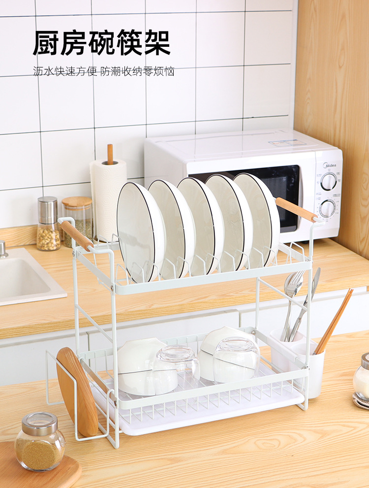 맞춤형 단철 식기 보관 및 식기 랙 다기능 주방 보관 랙 더블 레이어 대용량 배수 식기 랙스토어 가기