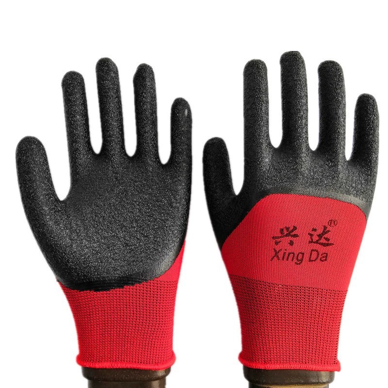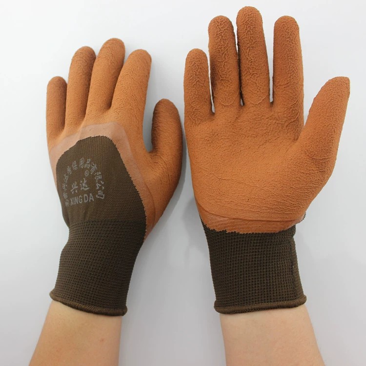浸胶发泡皱纹手套 棕色 绿纱黑