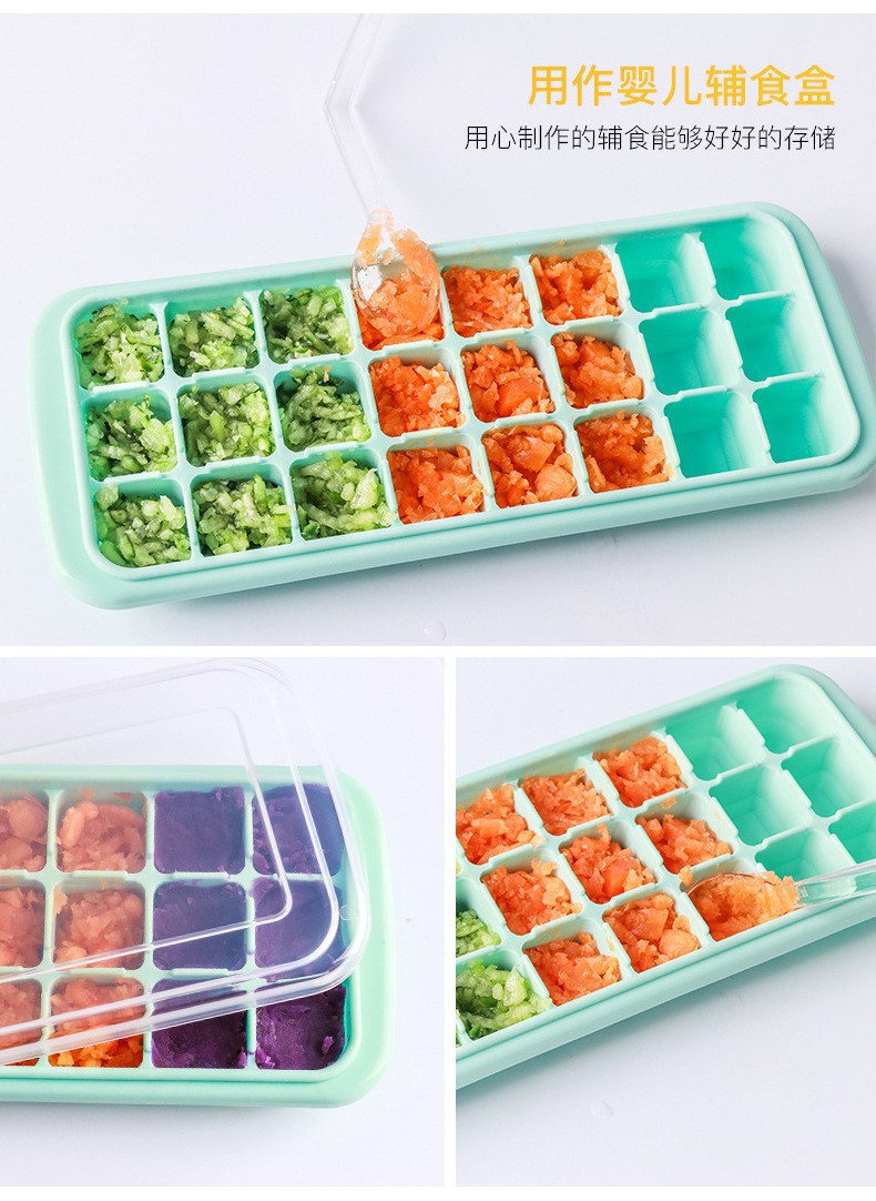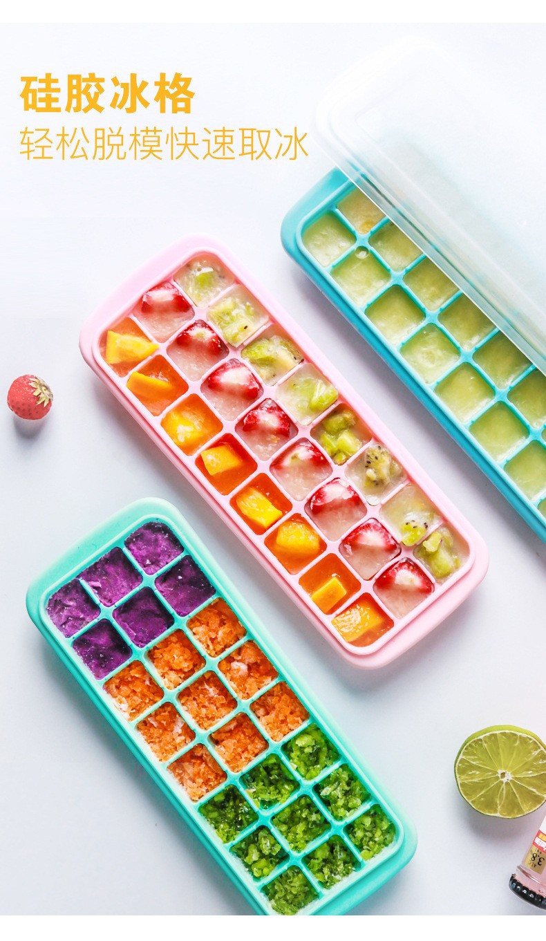 뚜껑이있는 실리콘 아이스 몰드 그리드 가정용 바 24 그리드 제빙기 식품 등급 36 그리드 아이스 그리드 상업용 보관함