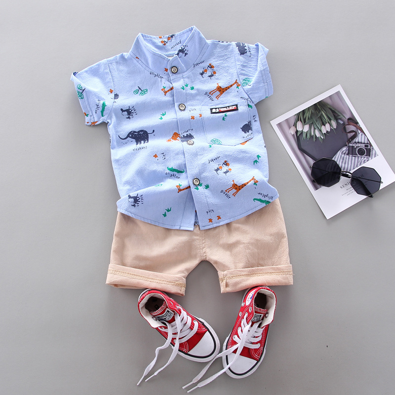 2022 여름 새로운 소년 코끼리 기린 반팔 셔츠 2 피스 어린이 잘 생긴 세트 세대스토어 가기