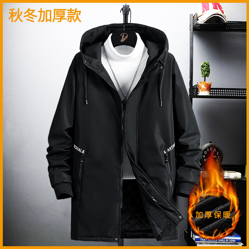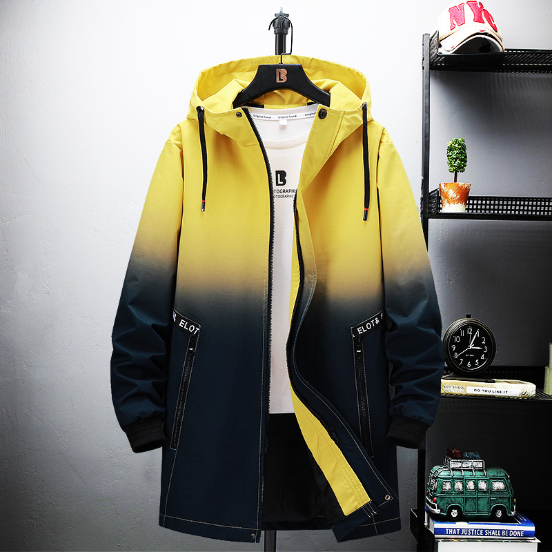 봄과 가을 패션 남자의 모든 경기 그라데이션 후드 코트 통통한 청소년 플러스 플러스 사이즈 느슨한 중간 길이 코트스토어 가기