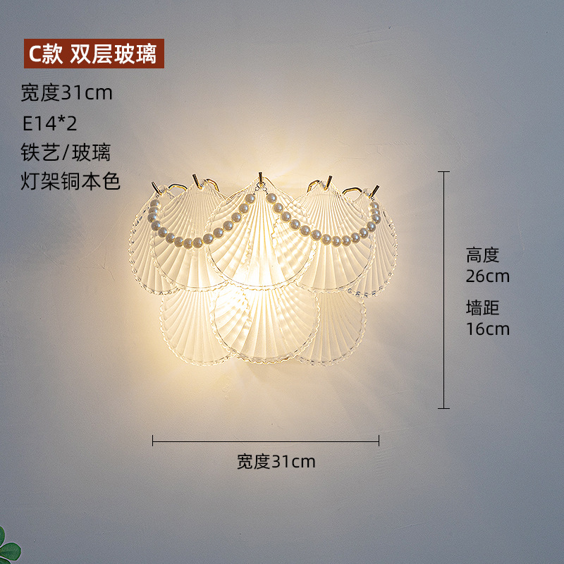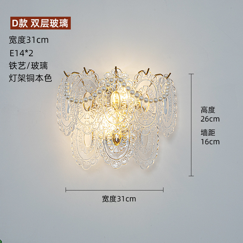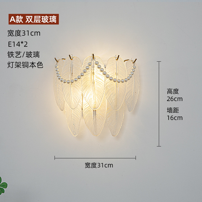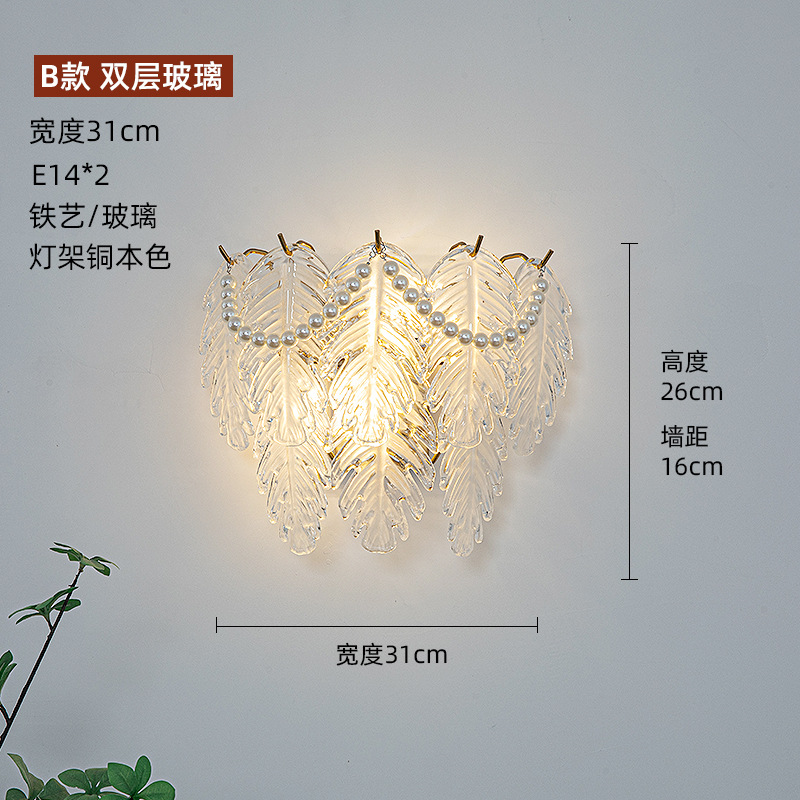 현대 빛 고급 벽 램프 인터넷 유명한 침실 침대 옆 램프 거실 TV 벽 램프 프랑스 스타일 독특한 잎 유리 램프