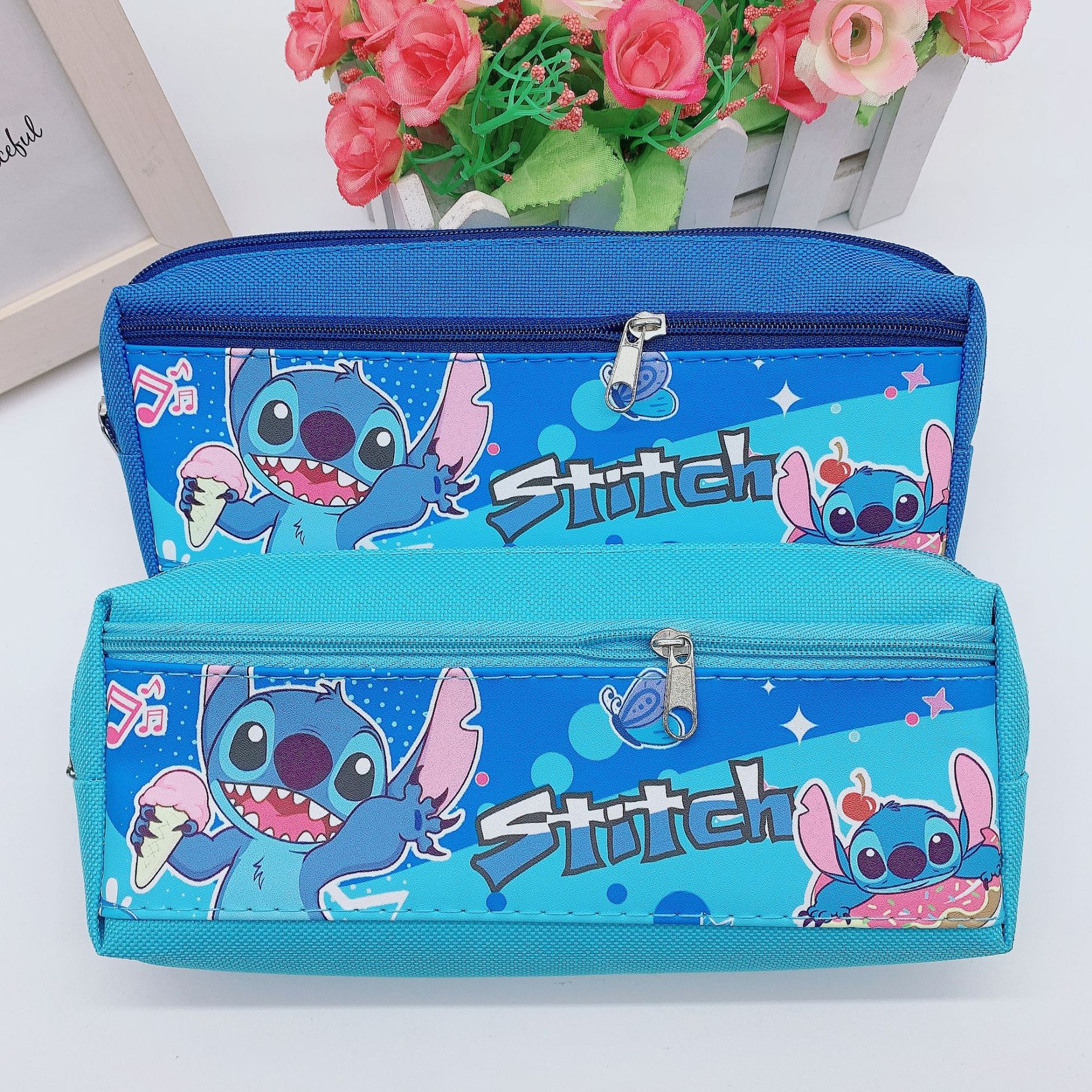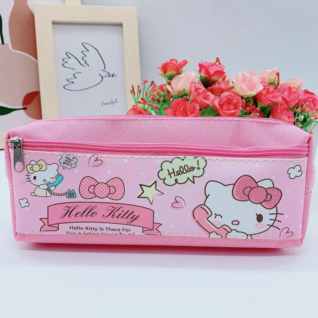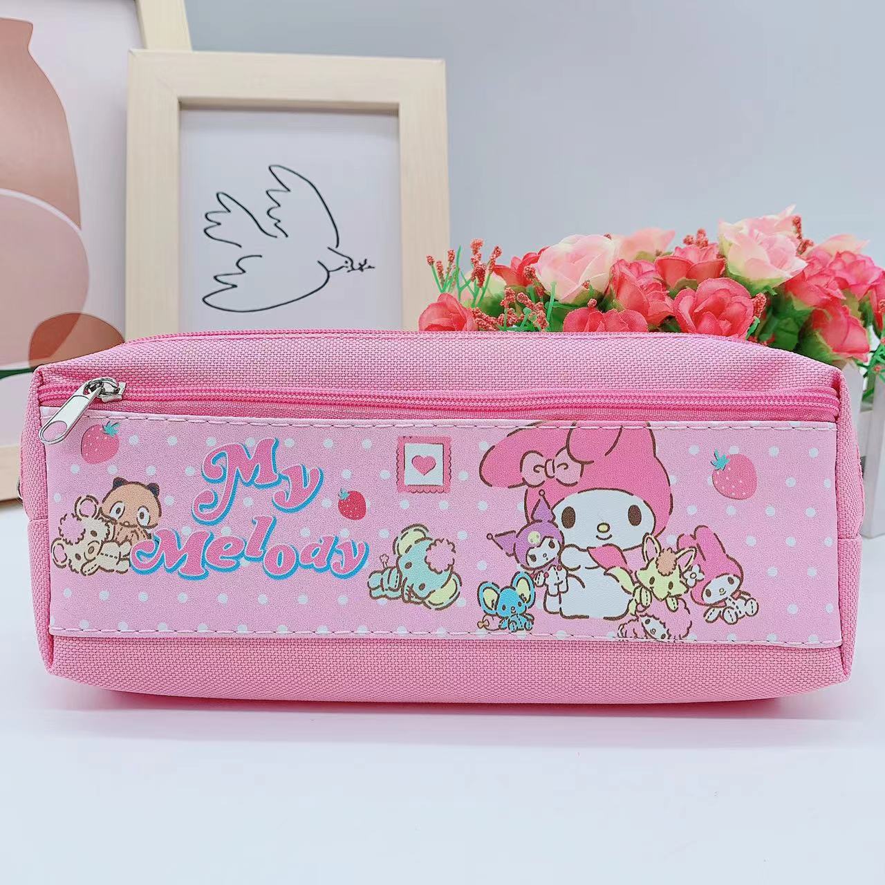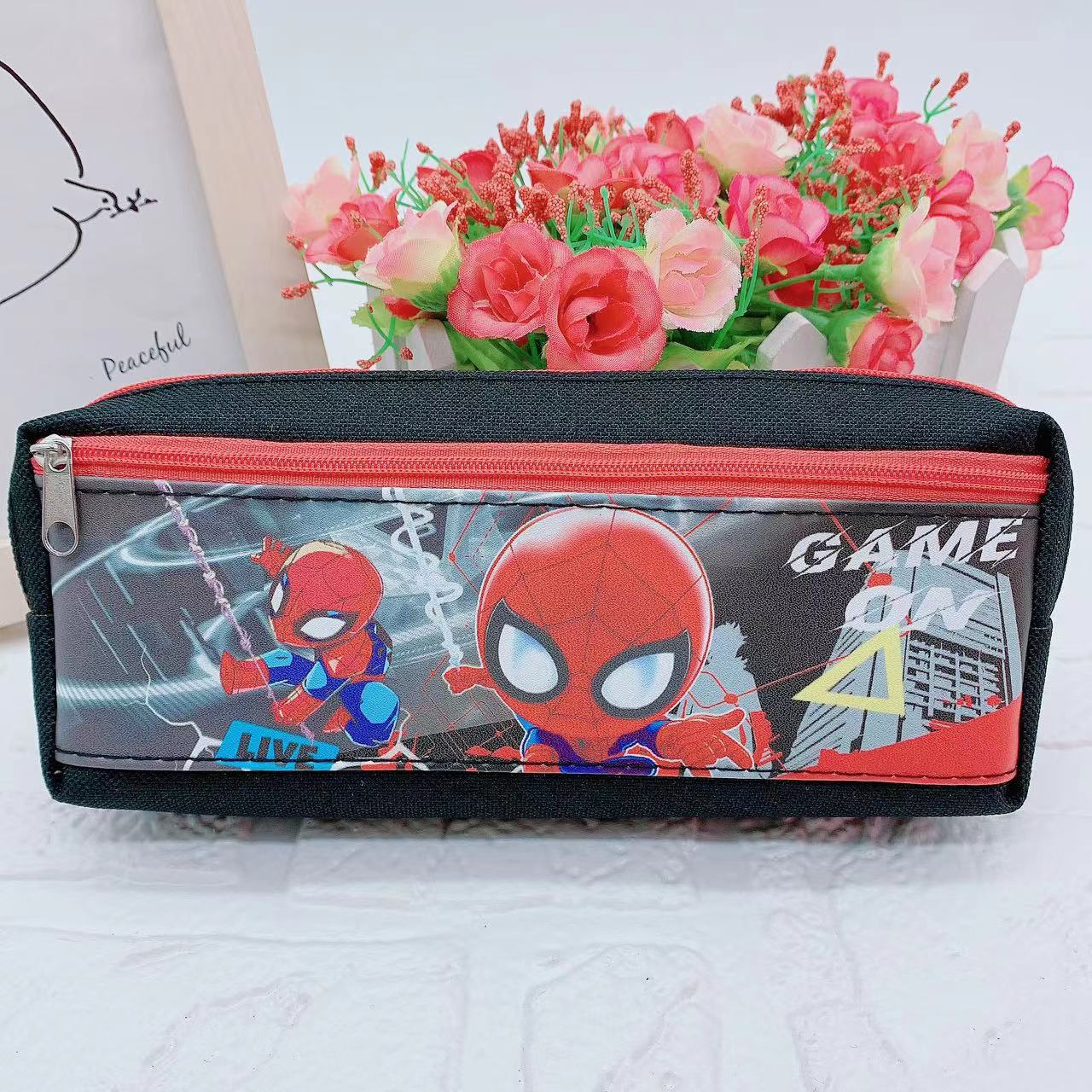 만화 Kuromi 지퍼 연필 가방 학생 문구 보관 가방 스티치 PU 옥스포드 천 공주 스파이더 맨 연필 가방