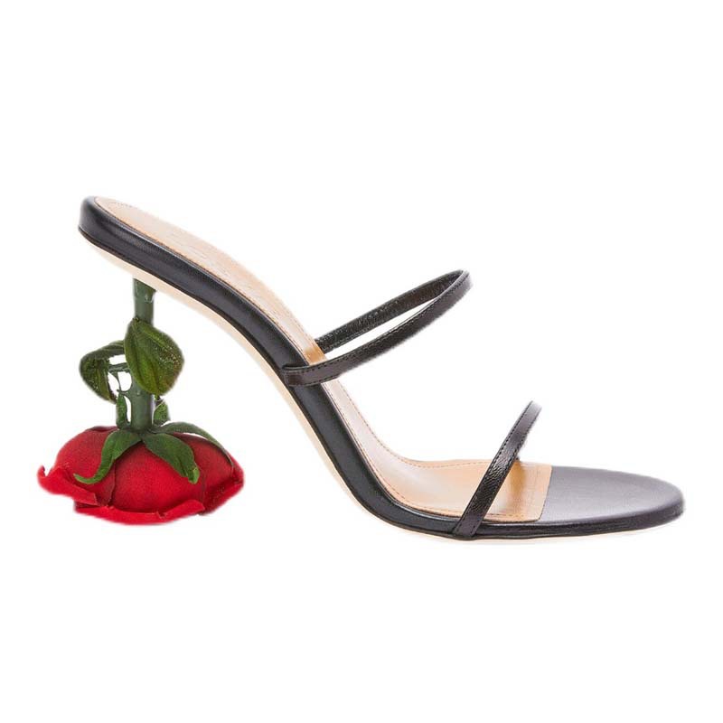 2022 새로운 로즈 매니큐어 여성을위한 피곤한 발이없는 안정적이고 편안한 슬리퍼가 달린 하이힐 가죽 샌들