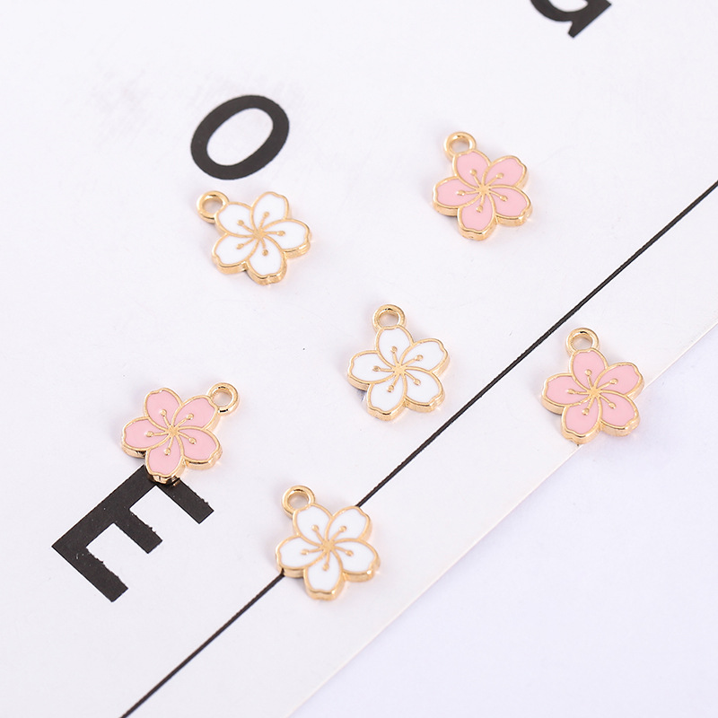 Diy 보석 액세서리 드롭 오일 kc 황금 벚꽃 작은 펜던트 핑크 다섯 꽃잎 꽃 귀걸이 팔찌 펜던트 공장 콘센트스토어 가기