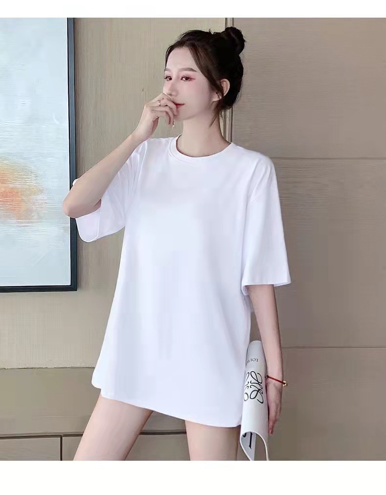 반팔 티셔츠 여성용 루즈한 한국식 반팔 in 트렌디 심플 라운드 칼라 유행 2022 새로운 플러스 사이즈 통통녀 화이트 탑스토어 가기