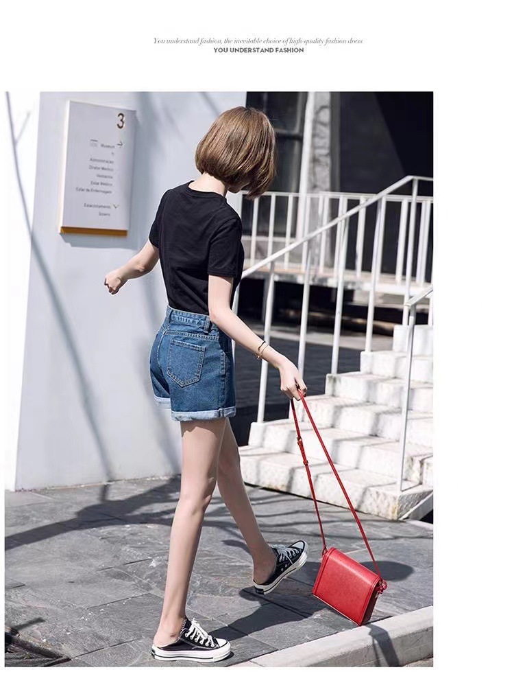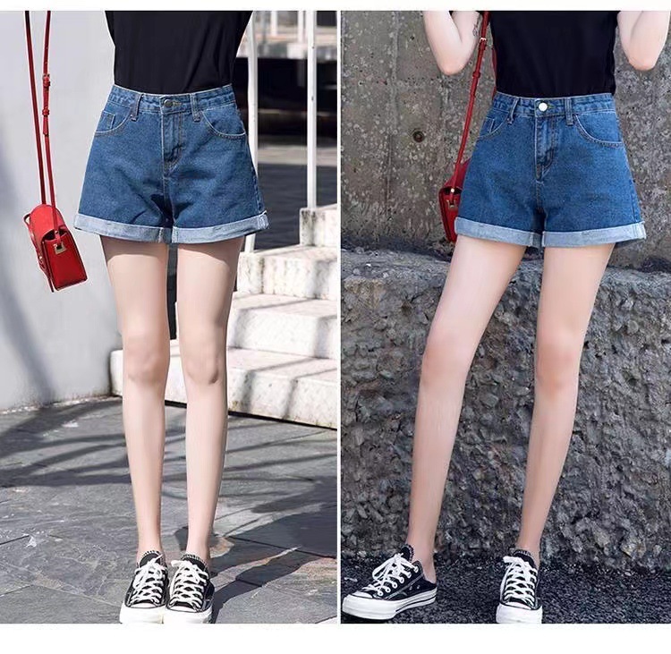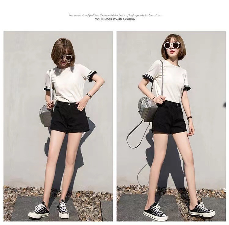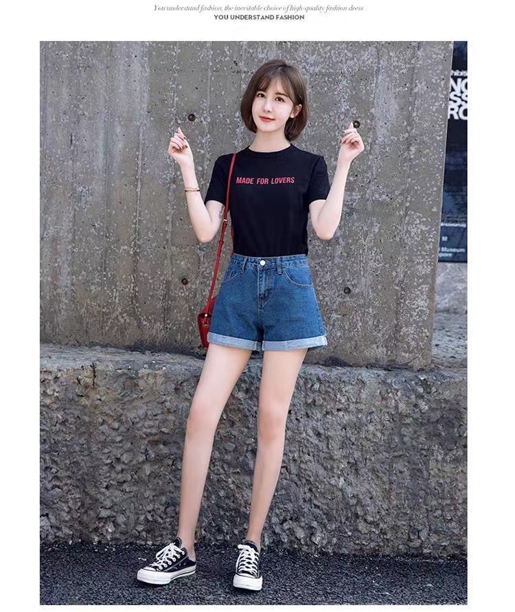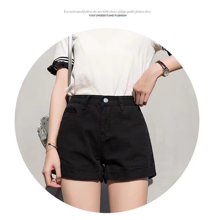 하이 웨이스트 블랙 데님 반바지 여자의 여름 학생 컬링 느슨한 슬림 A-라인 와이드 레그 팬츠 뜨거운 한국 스타일 트렌디 바지스토어 가기