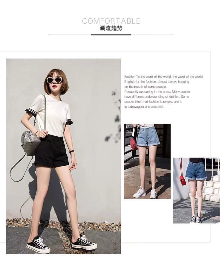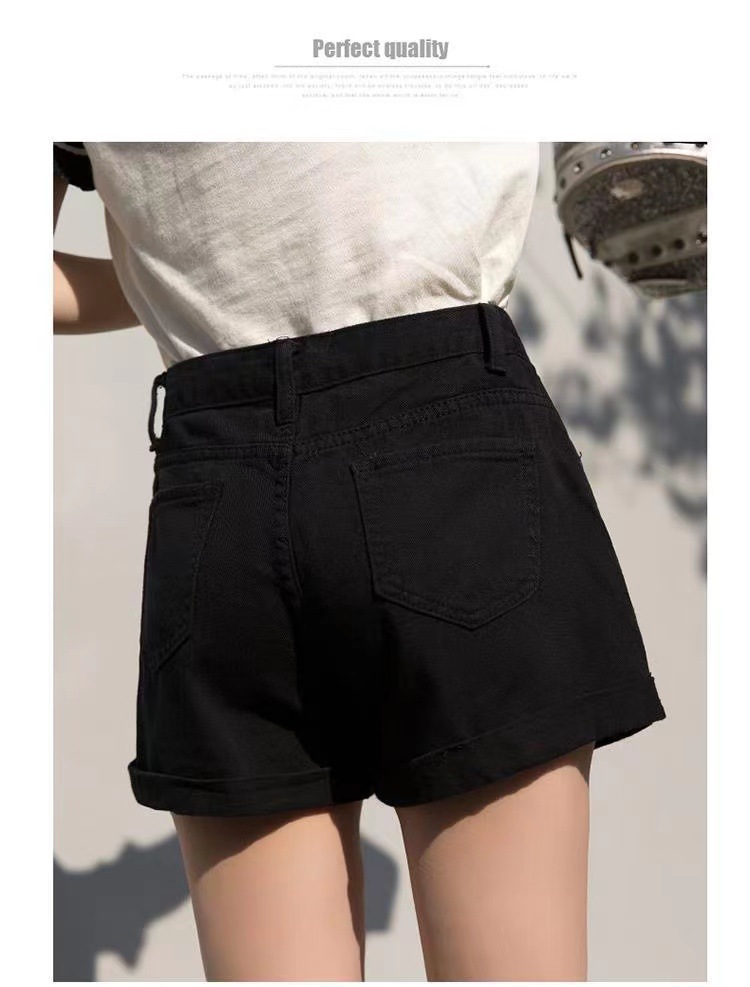 하이 웨이스트 블랙 데님 반바지 여자의 여름 학생 컬링 느슨한 슬림 A-라인 와이드 레그 팬츠 뜨거운 한국 스타일 트렌디 바지