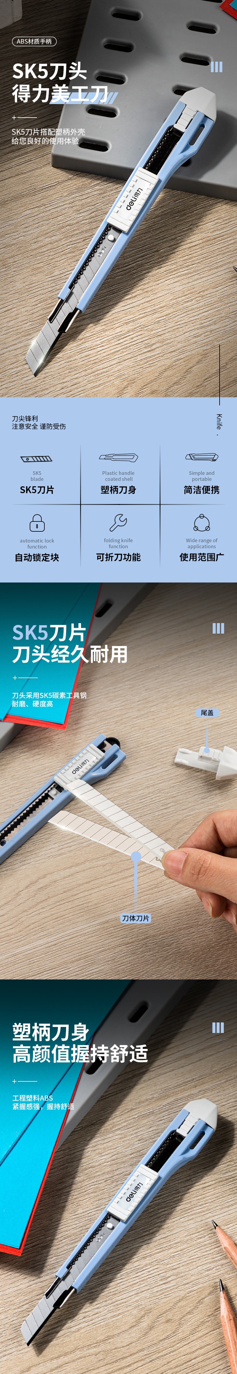 델리 2031 아트 나이프 델리 종이 커터 종이 커터 작은 사무실 아트 나이프