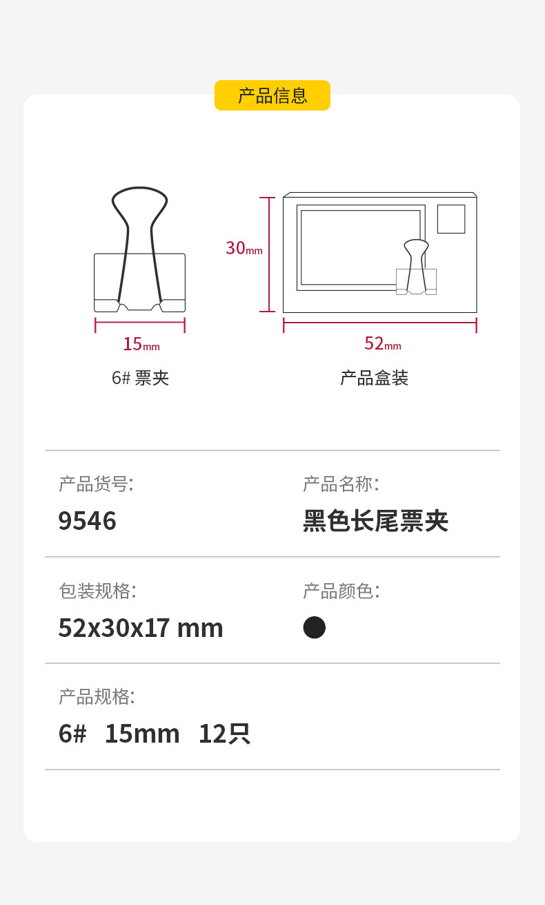 델리 문구 9546 롱 테일 클립 블랙 티켓 클립 더브테일 클립 데이터 클립 피쉬 테일 클립 12 박스 6 # 클립