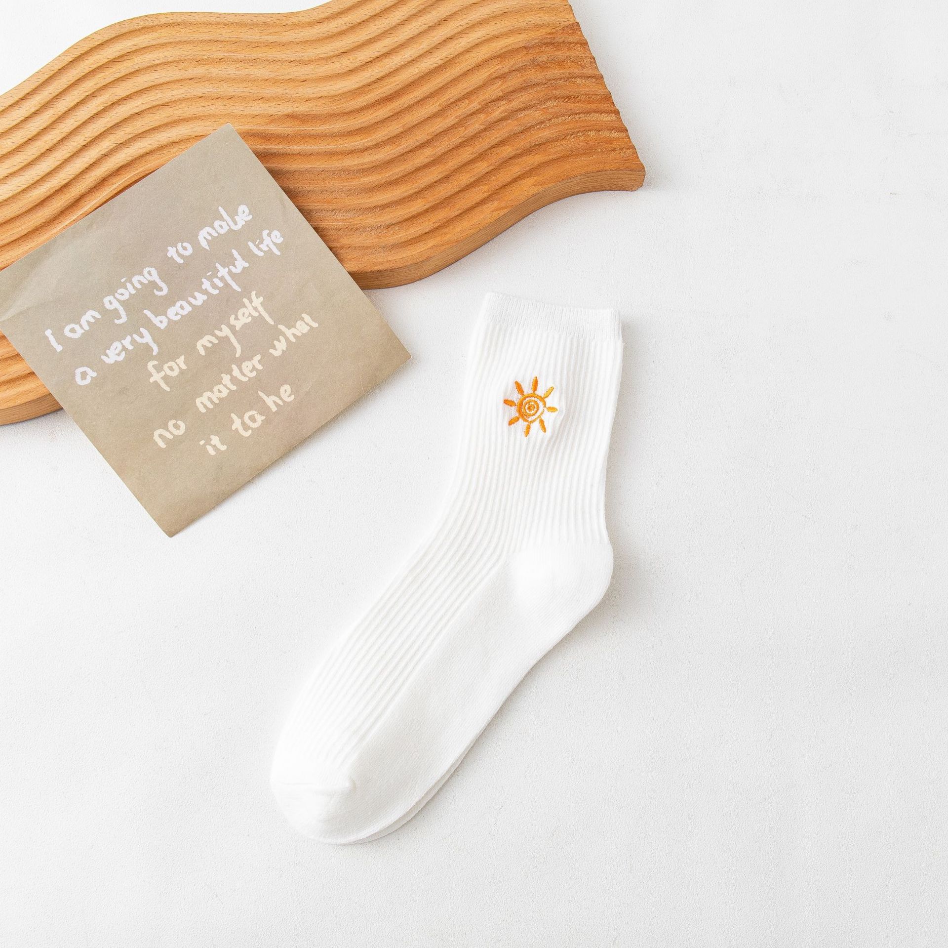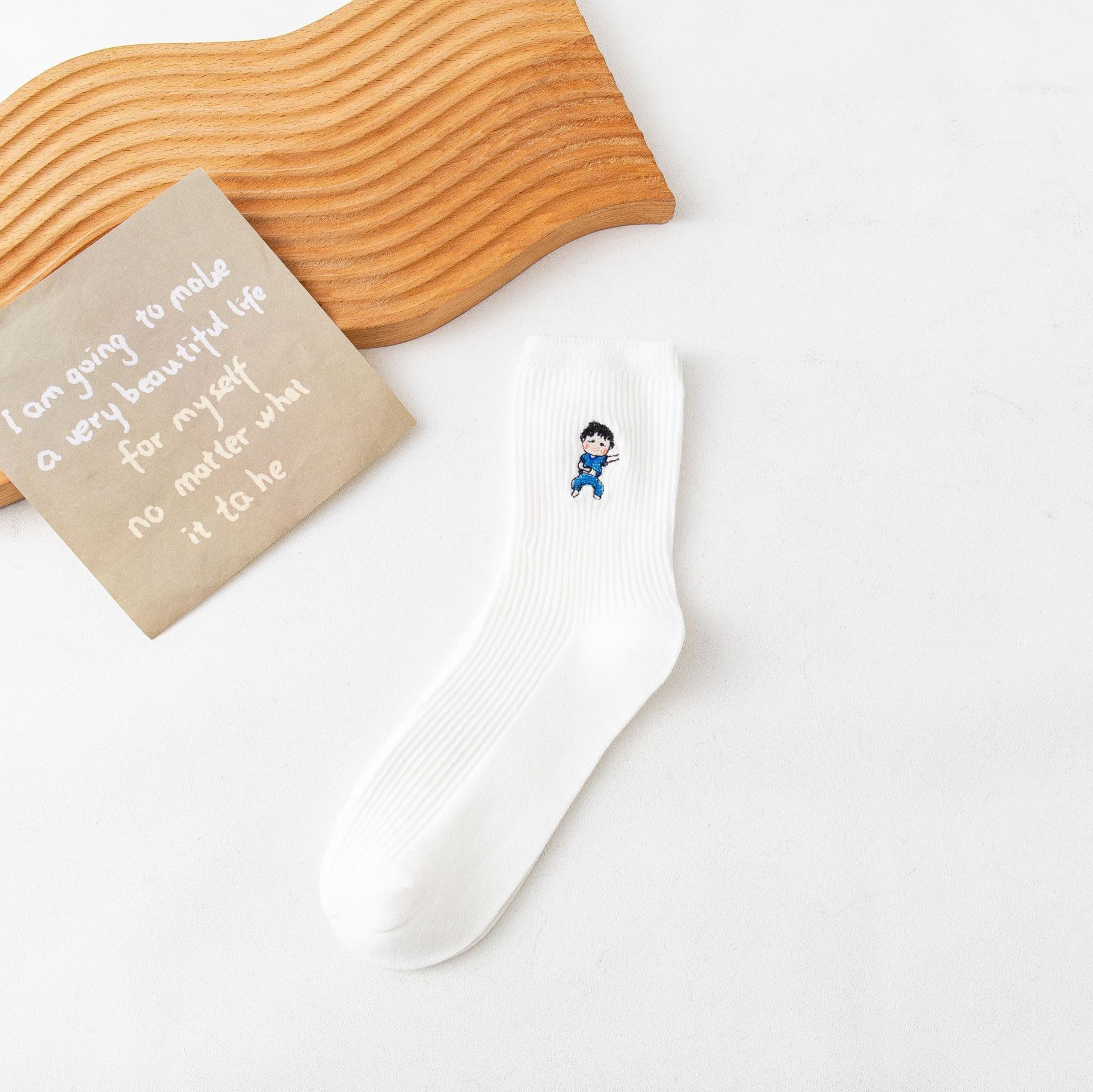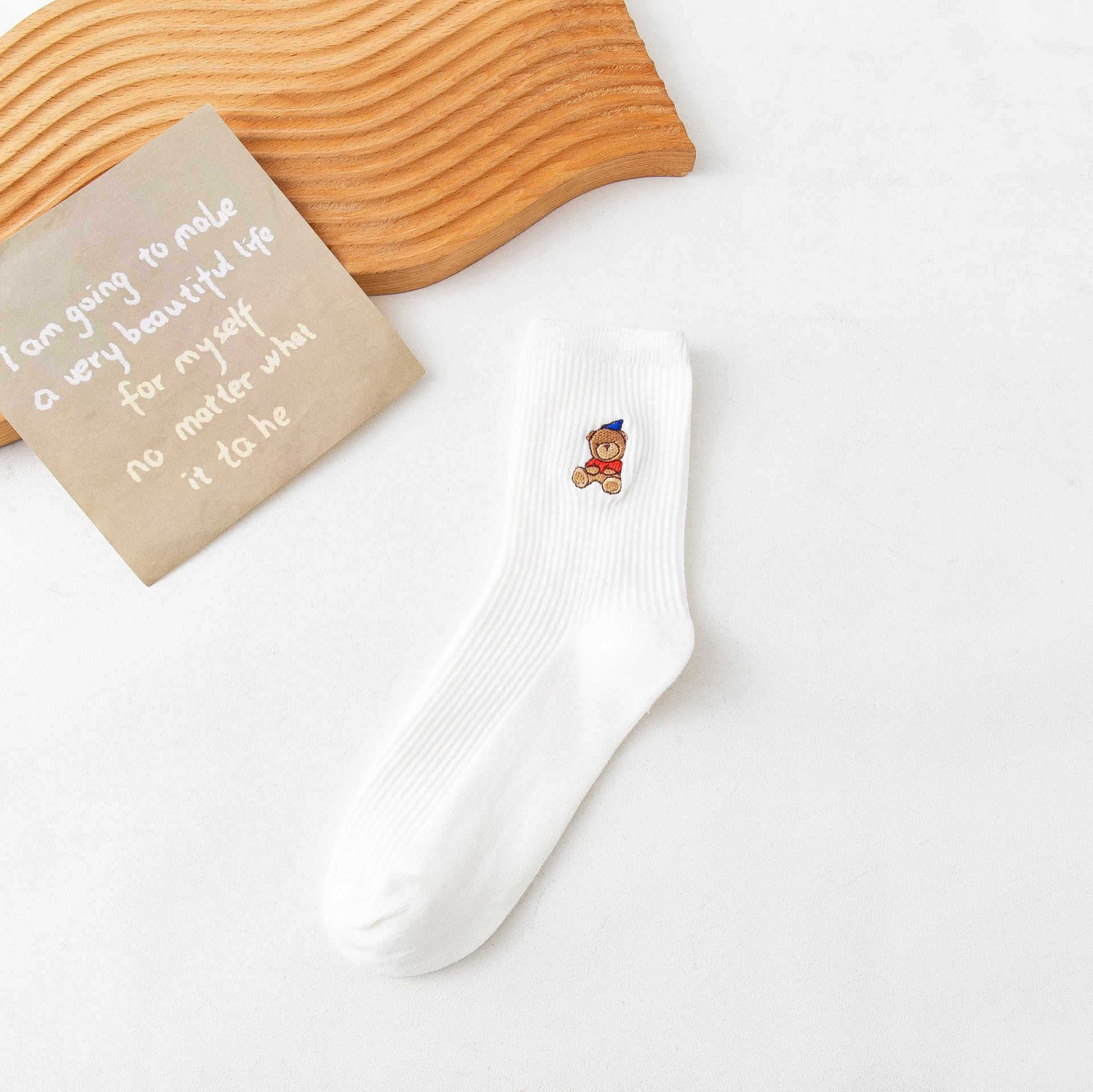 여성용 양말 한국식 대학 스타일 일본식 인스 타 그램 스타일 트렌디 귀여운 자수 토끼 스택 흰색 스타킹스토어 가기