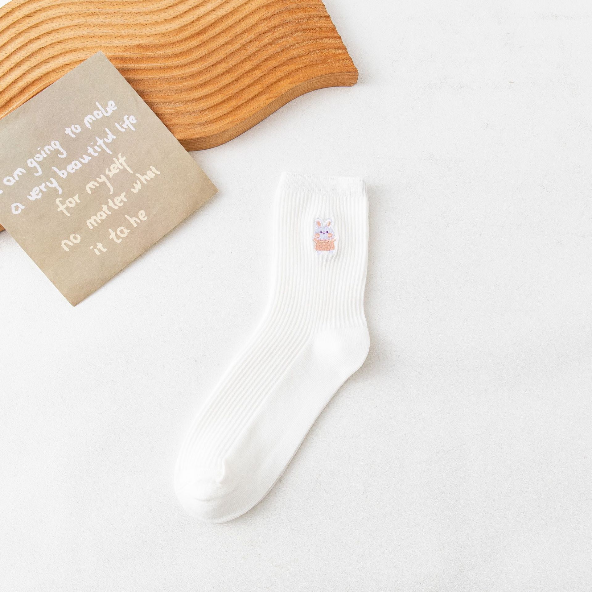 여성용 양말 한국식 대학 스타일 일본식 인스 타 그램 스타일 트렌디 귀여운 자수 토끼 스택 흰색 스타킹