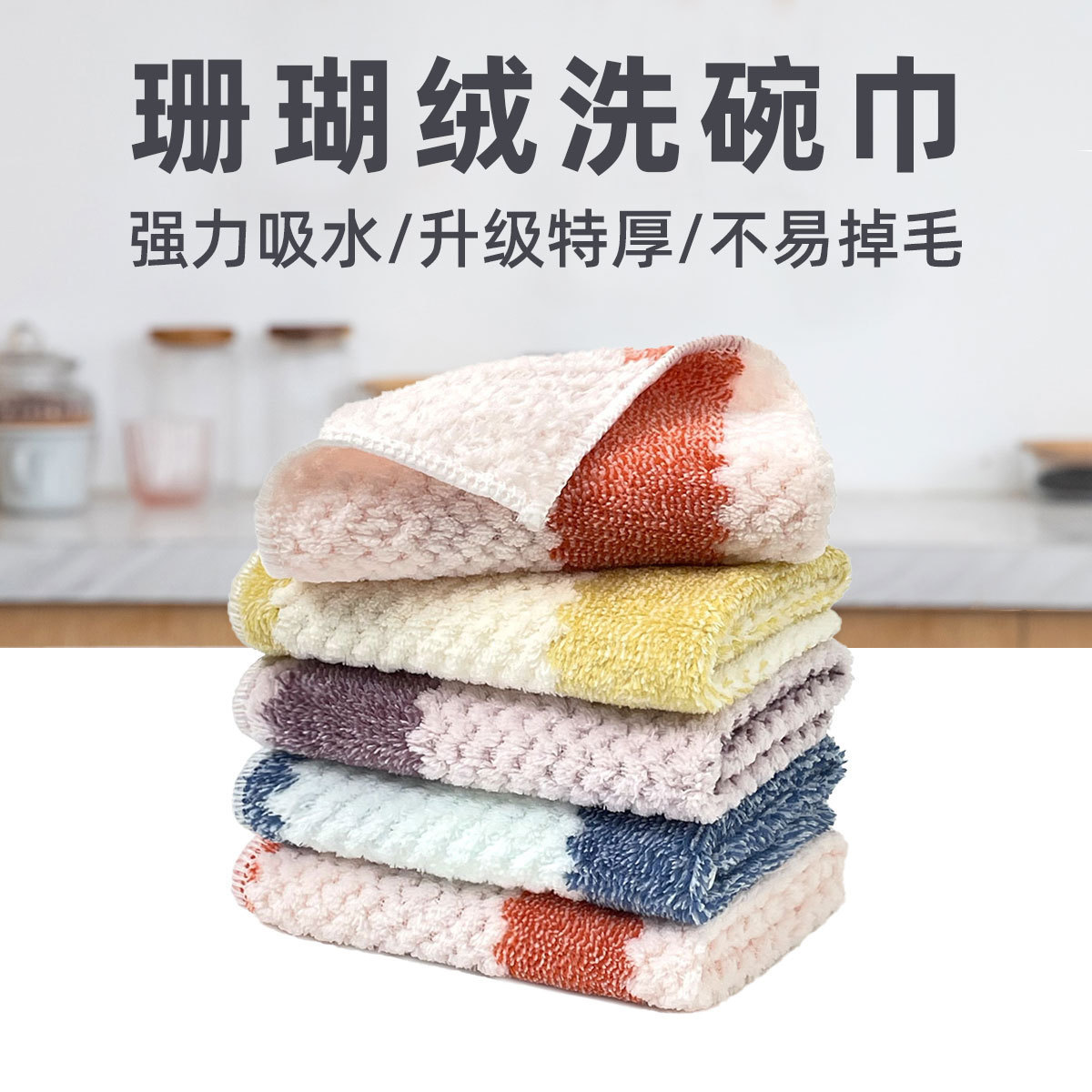두꺼운 양이온 걸레, 손수건, 산호벨벳, 논스틱 오일 흡수성 수건, 설거지용 천, 무지개 걸레