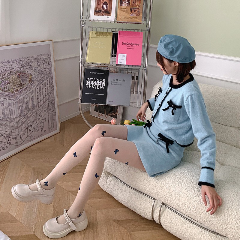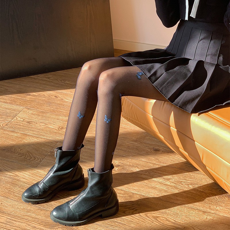블루 보우 실크 스타킹 여성용 블랙 실크 메쉬 레드 트렌디 한 얇은 팬티 스타킹 섹시 스크래치 방지 실크 파인애플 양말스토어 가기