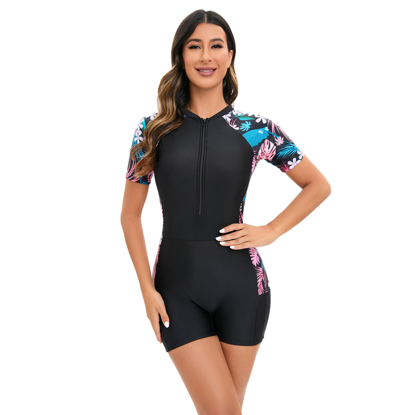 유럽과 미국의 원피스 지퍼 스포츠 수영복 여성 반팔 서핑 수영복 선 스크린 서핑 세트 플랫 테두리 해파리 세트 스노클링 세트