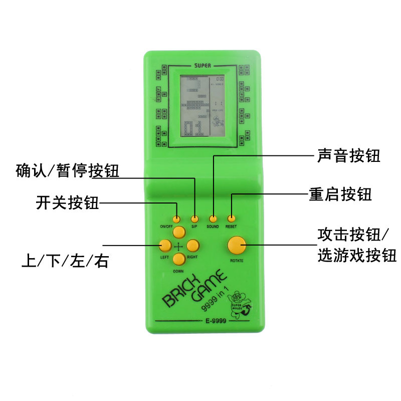 记忆功能:您按下暂停键,然后再按下开关将机器关闭,当您忙完事情后只需按下开关键就可以继续您先前的游戏了(在电池没有取下的状态)。