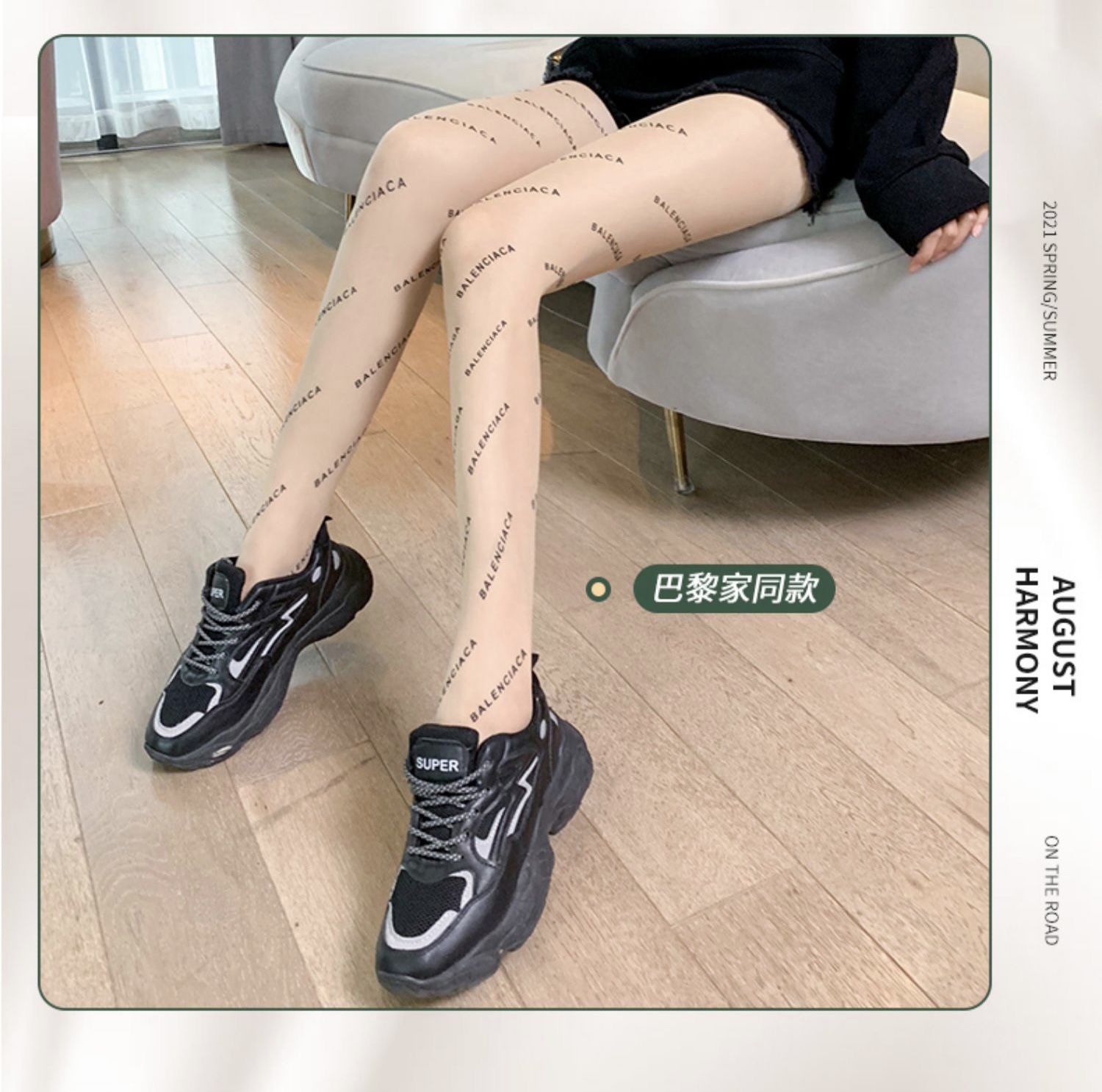 블랙 실크 스타킹 여성용 봄과 여름 파리 편지 로리타 한국 스타일 샤넬 스타일 화이트 자카드 사이버 연예인