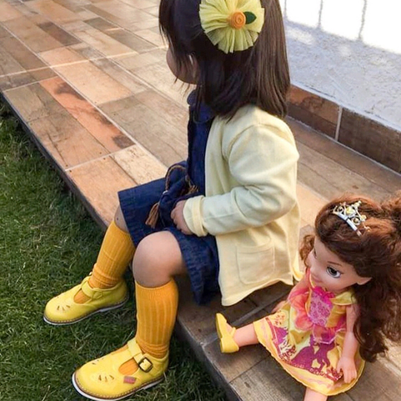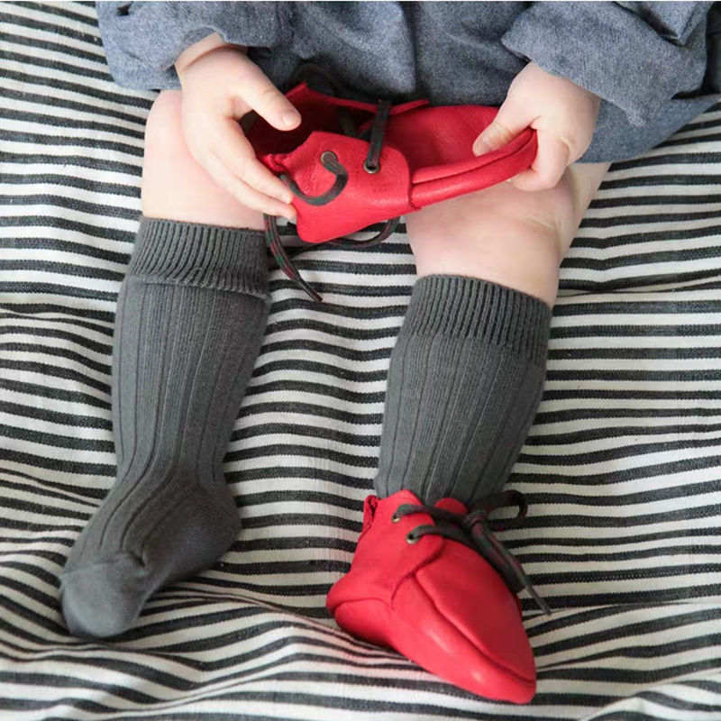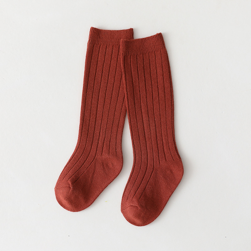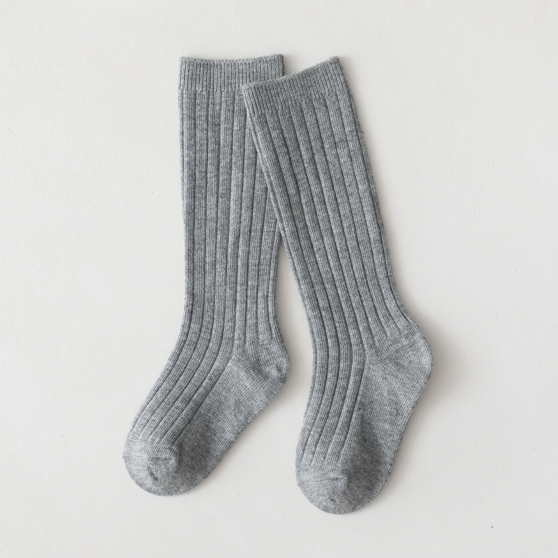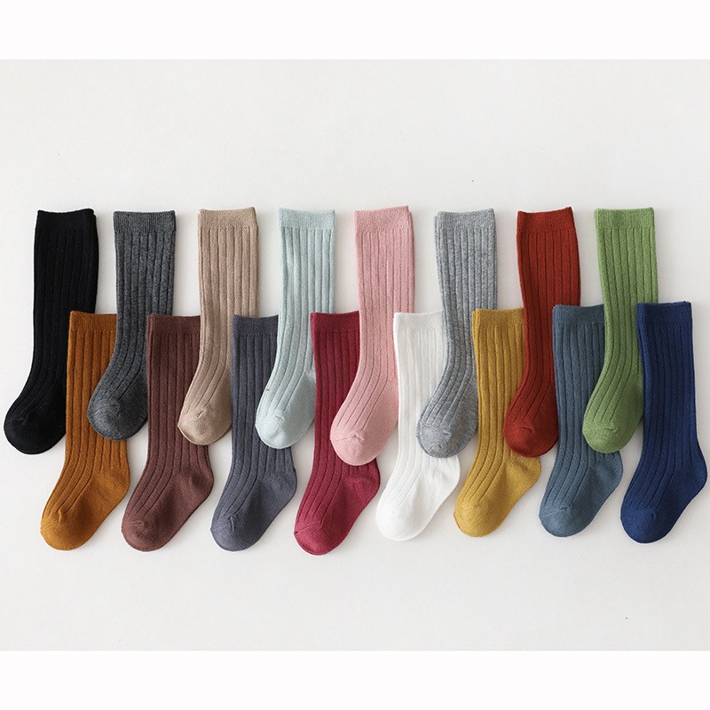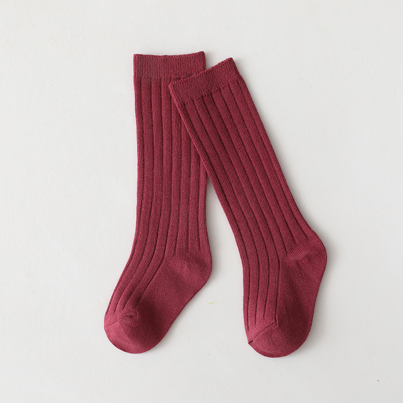 스페인 스타일 어린이 양말 더블 바늘 세로 줄무늬 중간 종아리 길이 양말 아기 양말 단색 학생 양말 스포츠 양말