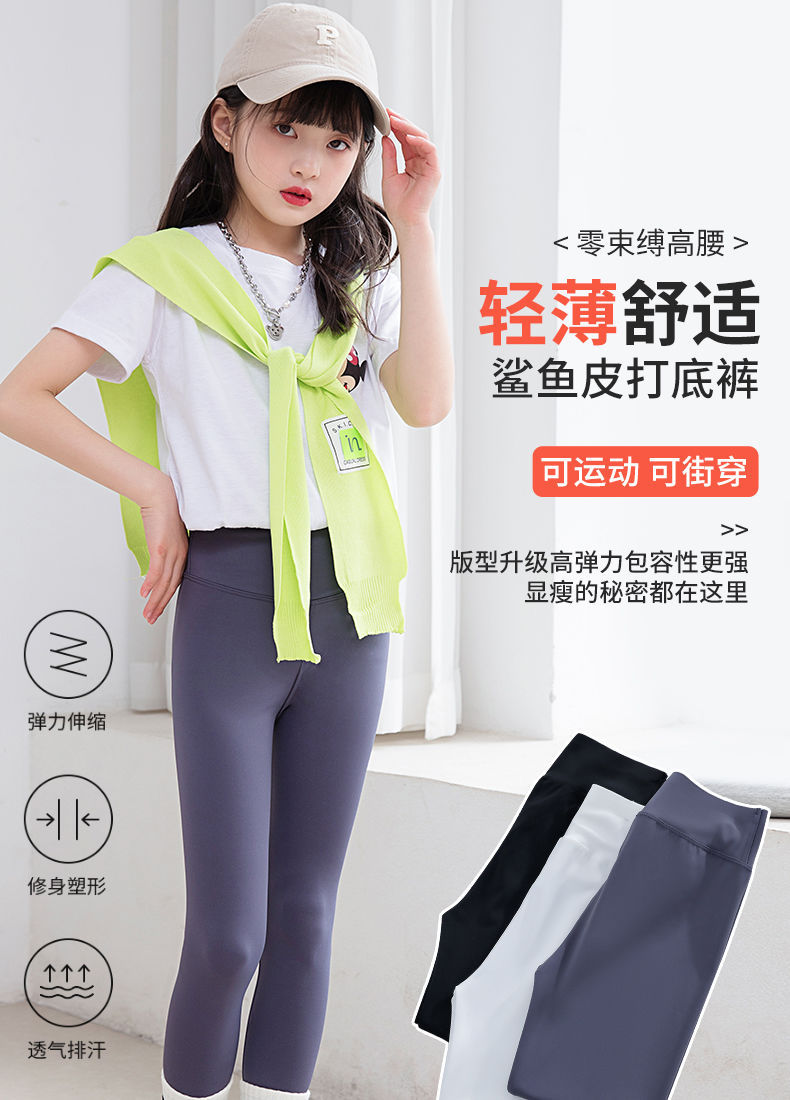 여아 상어 바지 봄과 가을 얇은 아동용 하이 웨이스트베이스 팬츠 겉옷 착용 서양식 중대형 아동용 흰색 원피스 바지스토어 가기