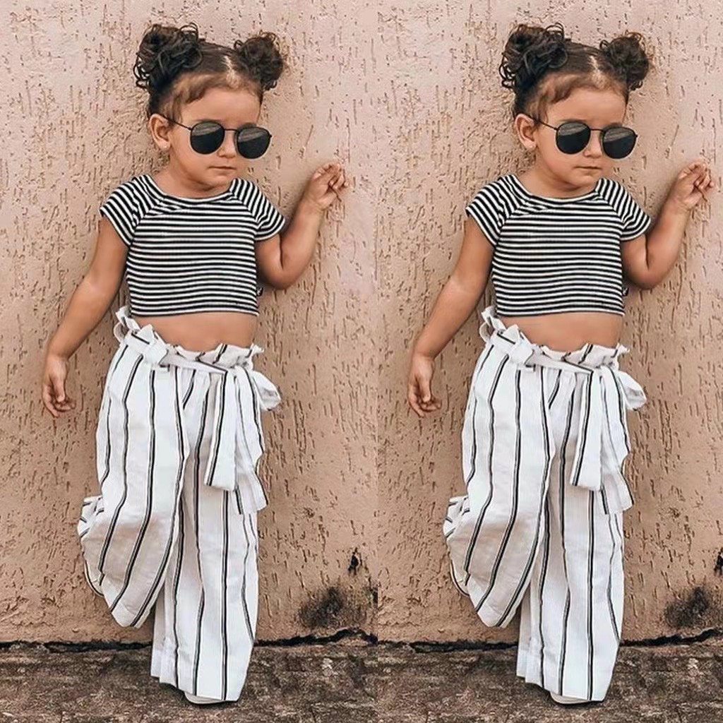 유럽과 미국 대외 무역 스트라이프 셔츠 탑 화이트 스트라이프 플레어 팬츠 나비 넥타이 투피스 아동복스토어 가기