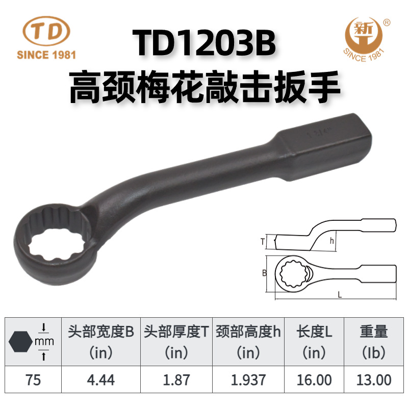 Tianda 신공 타악기 렌치 단일 헤드 렌치 하이 넥 매화 매화 타악기 렌치 TD1203B 미터법스토어 가기