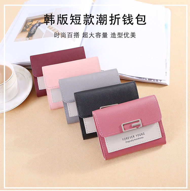 In 새로운 한국 스타일 스퀘어 작은 지갑 여성용 짧은 접이식 간단한 패션 여성용 카드 가방 미니 동전 지갑 3 겹
