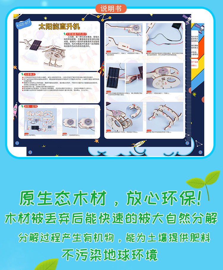 초등 및 중등 학생 재미있는 작은 발명 기술 소량 제작 DIY 태양 헬리콥터 퍼즐 과학 및 교육 완구스토어 가기