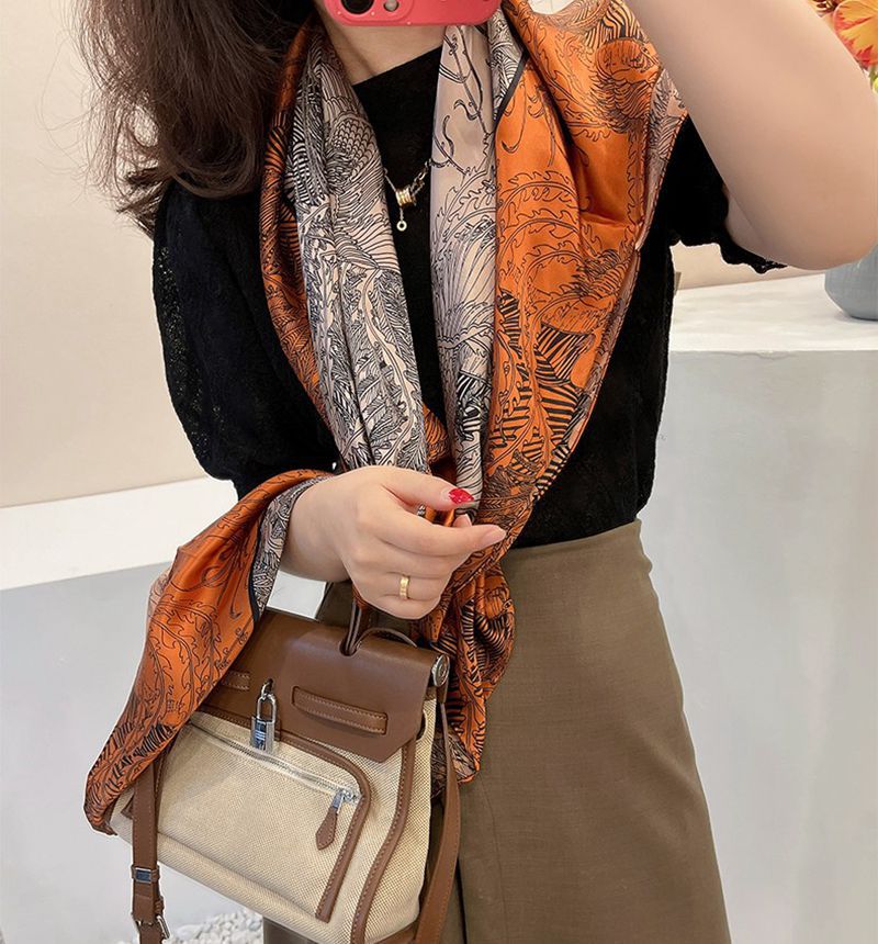 시크릿 린 러브 호스 오렌지 우아한 실크 여성용 봄과 가을 한국식 모든 매치 새틴 스퀘어 스카프 뽕나무 실크 스카프 숄