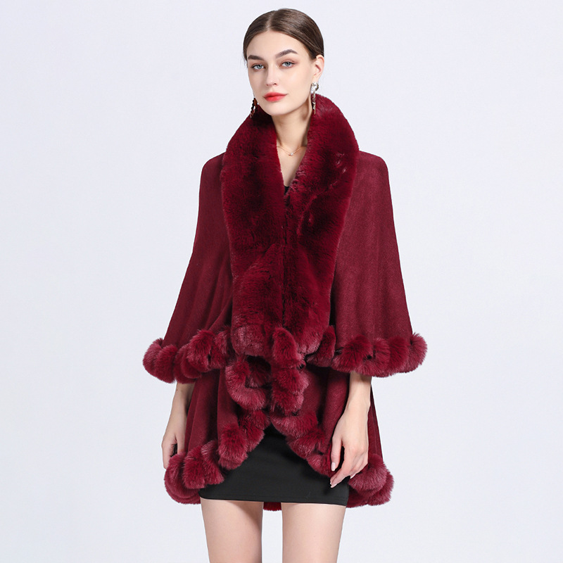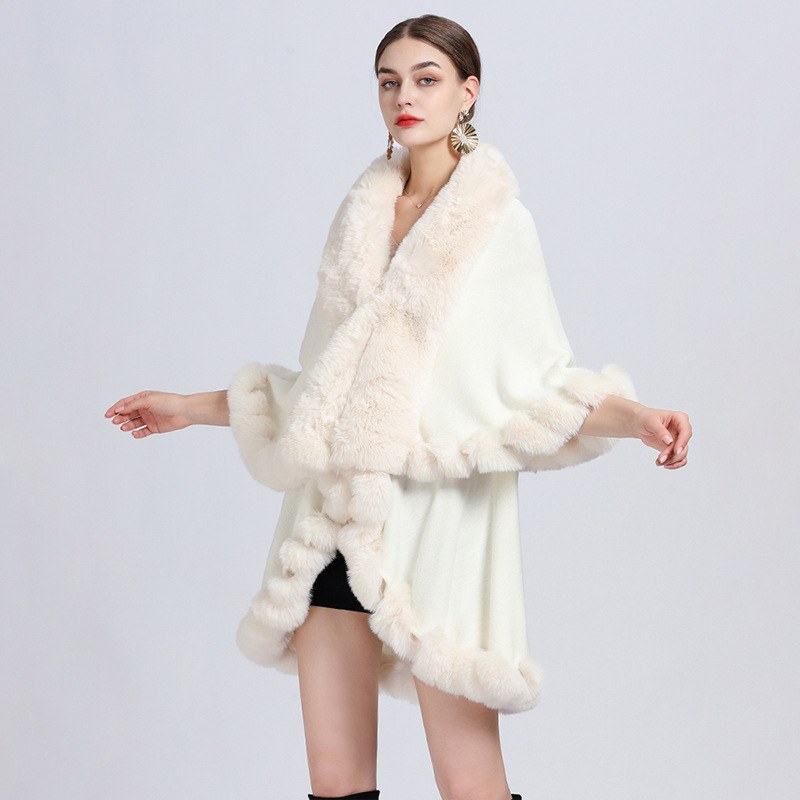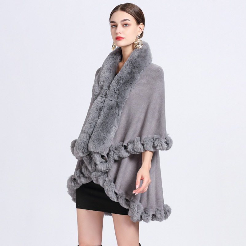 807 # 유럽과 미국 가을과 겨울 새로운 모조 렉스 토끼 모피 칼라 목도리 케이프 숙녀 플러스 사이즈 니트 카디건 느슨한 코트 여성스토어 가기