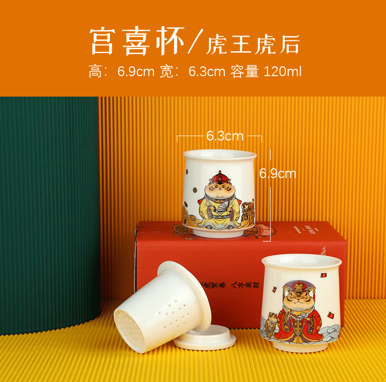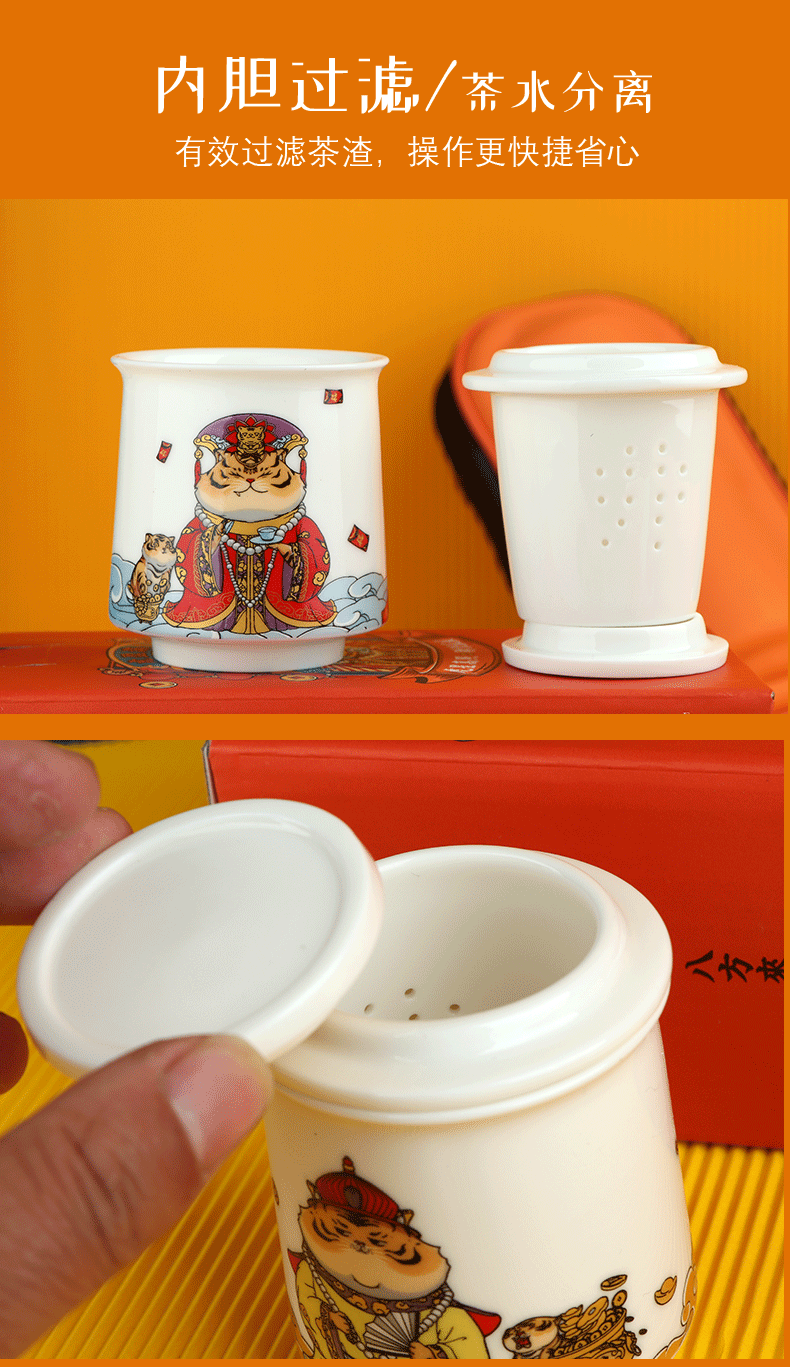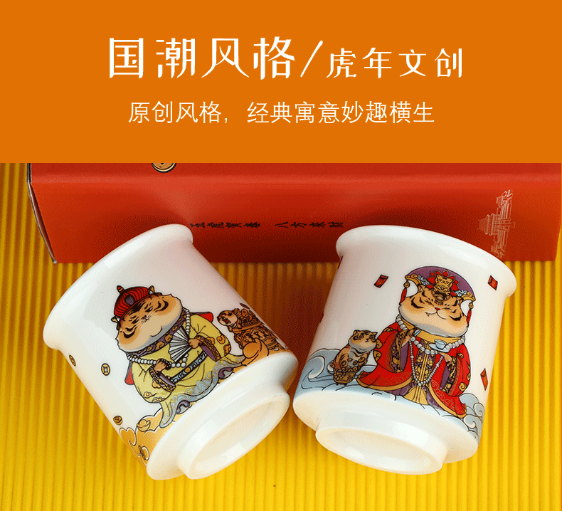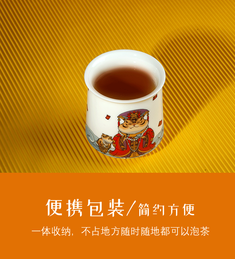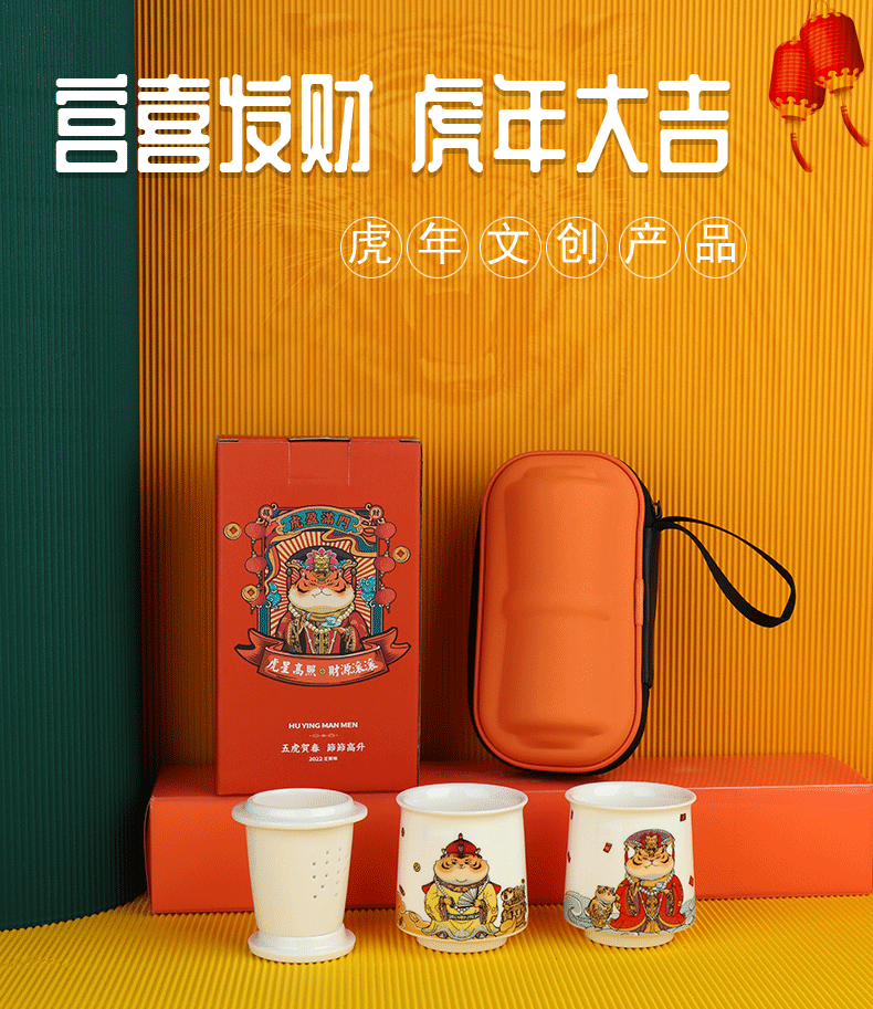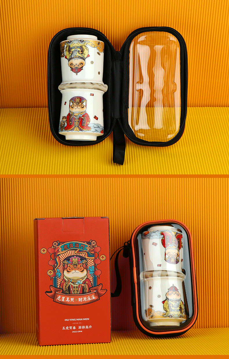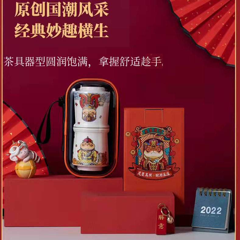 Guochao Wenchuang 여행 차 세트 세트 익스프레스 컵 1 포트 2 컵 호랑이 년 선물 티 컵 야외 선물스토어 가기