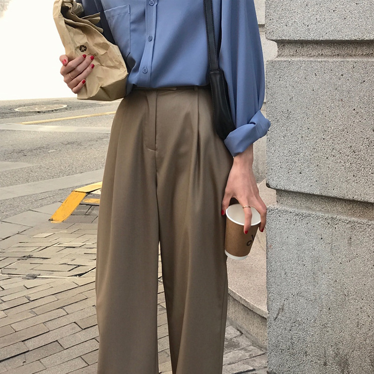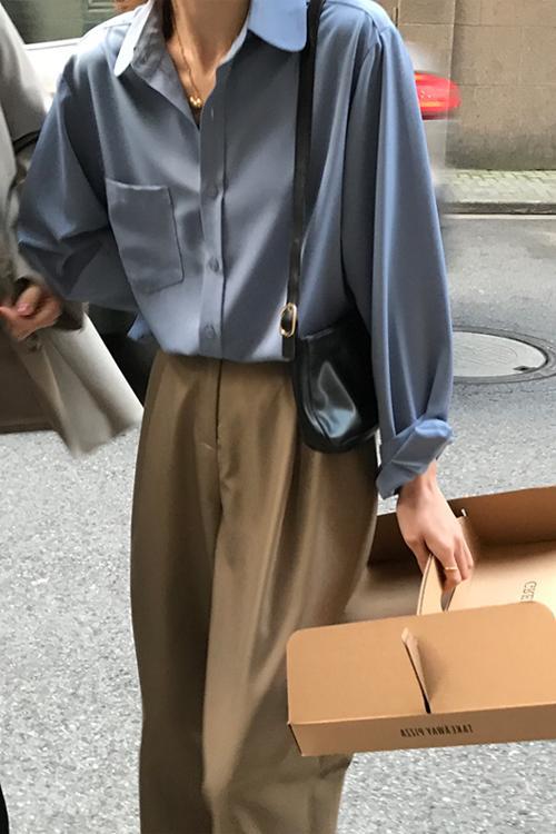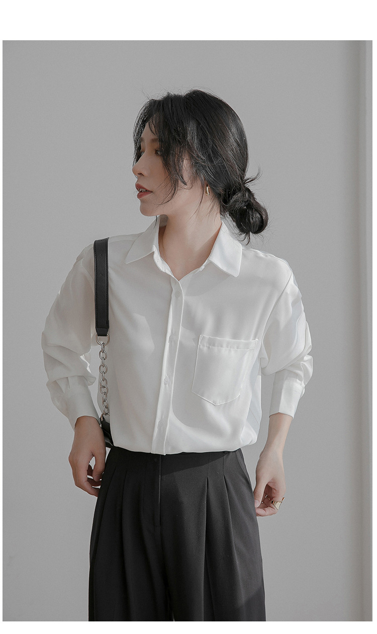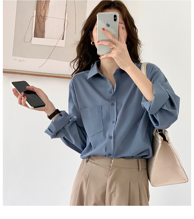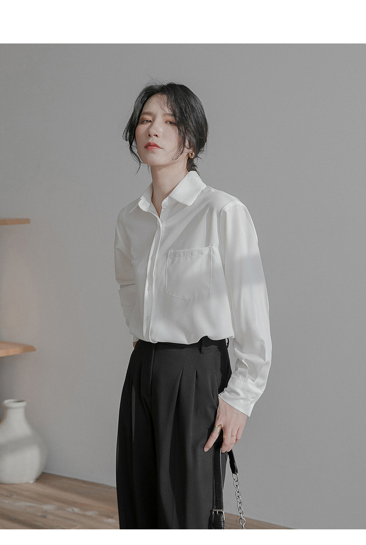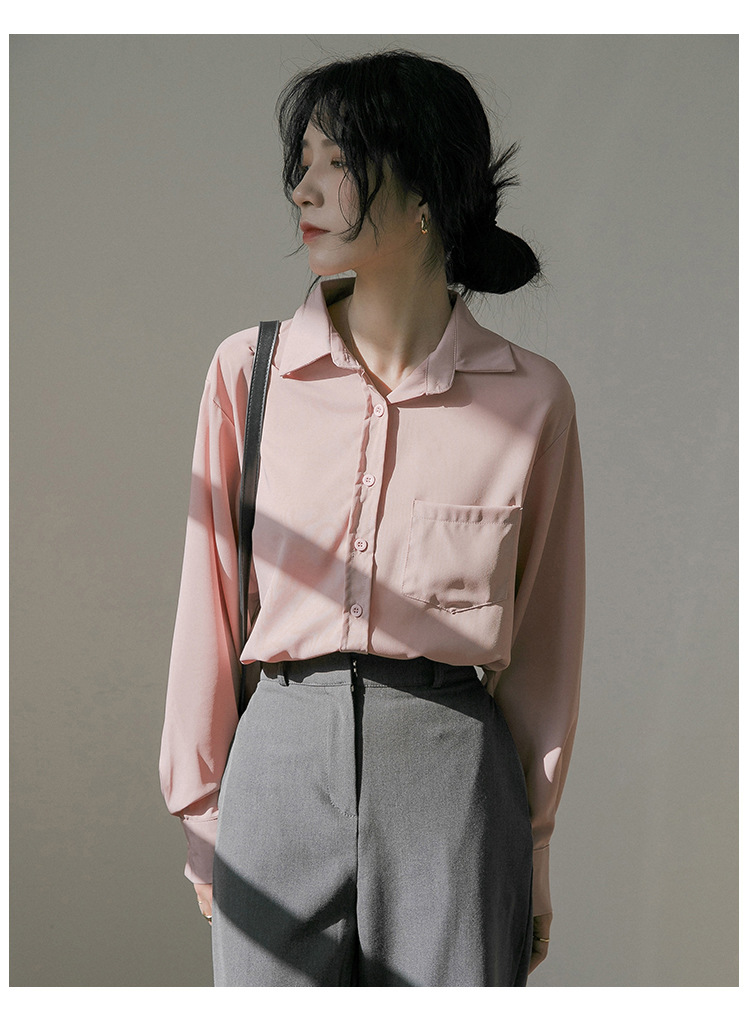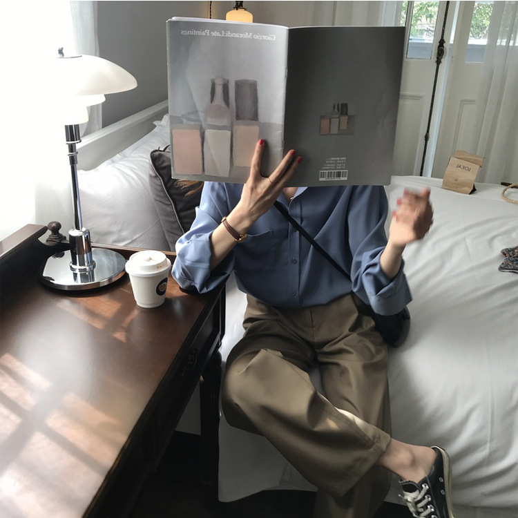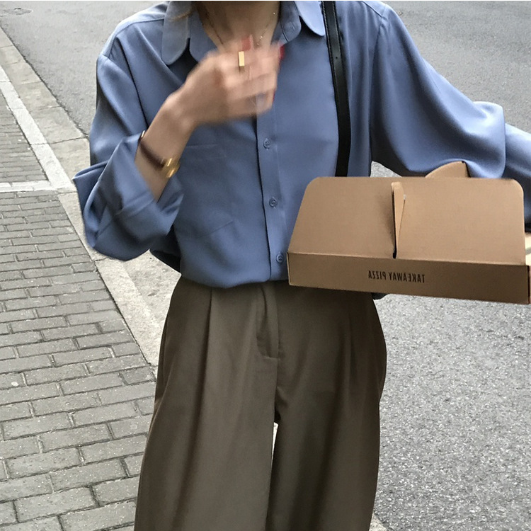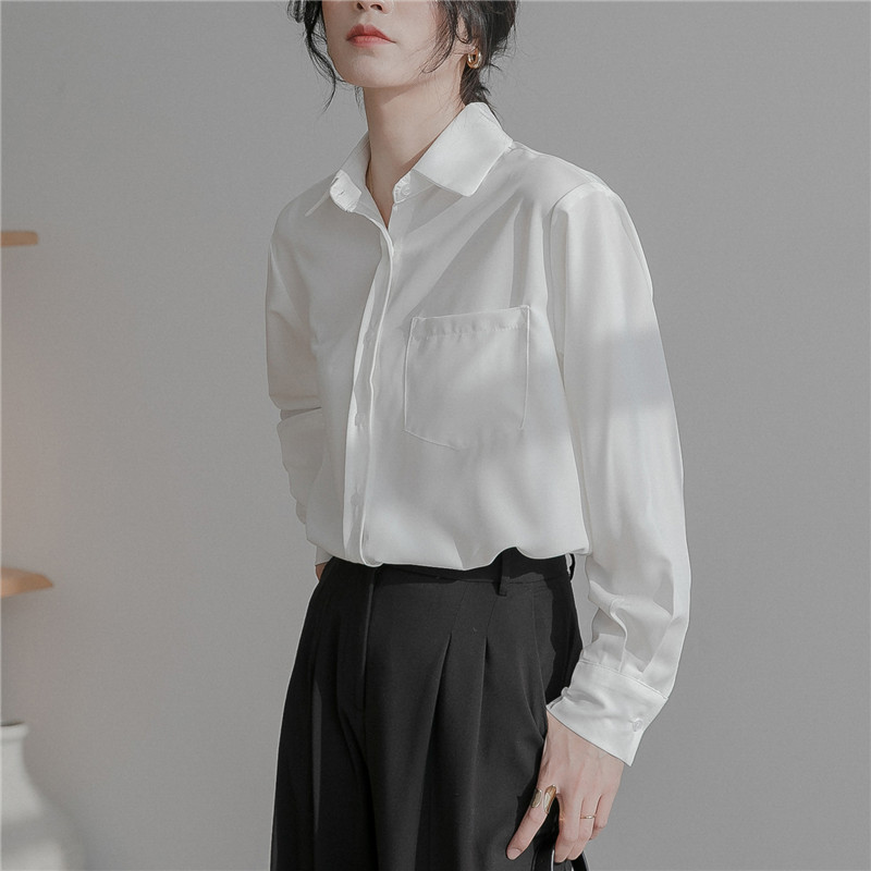 재고 2022 봄과 가을 디자인 감각 틈새 홍콩 맛 타로 퍼플 셔츠 여자의 최고 실키 긴 소매 셔츠스토어 가기