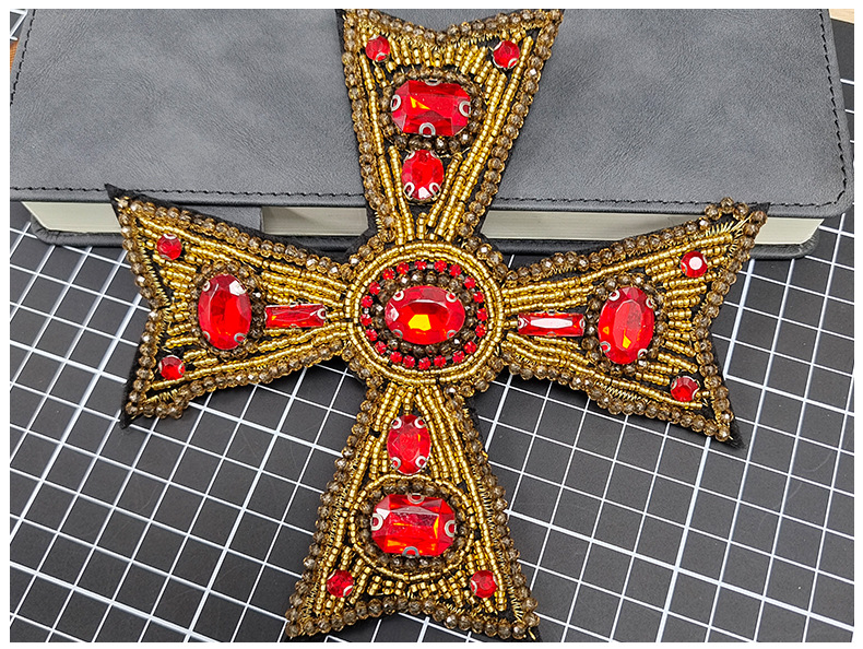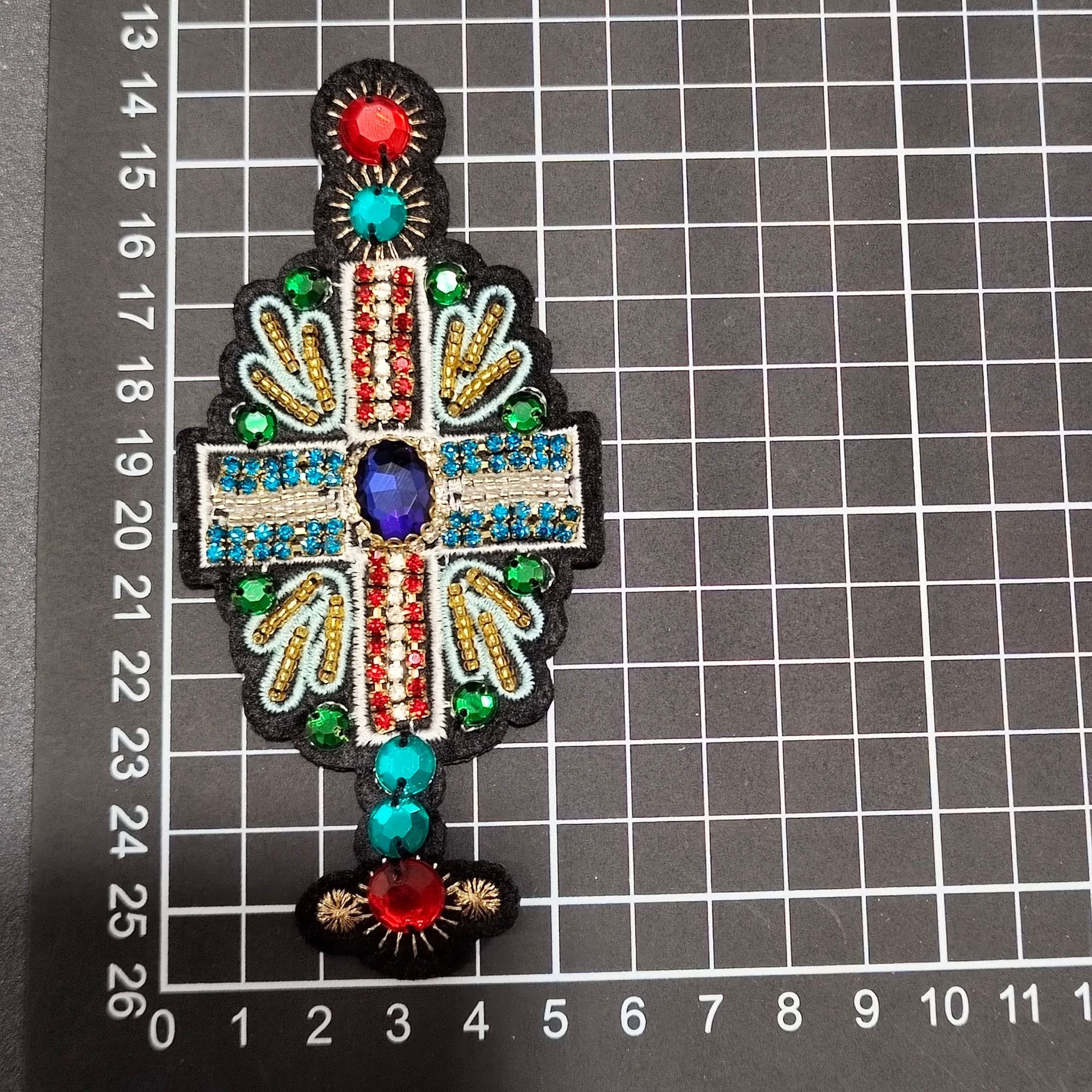 도매 수제 비즈 장식 크리스탈 십자가 패치 DIY 의류 액세서리 장식품 DIY 패치 수공예