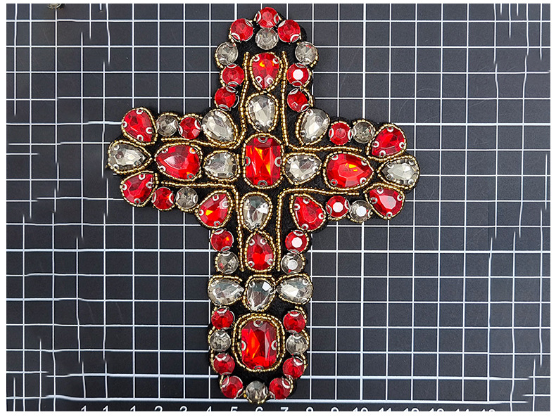 도매 수제 비즈 장식 크리스탈 십자가 패치 DIY 의류 액세서리 장식품 DIY 패치 수공예스토어 가기