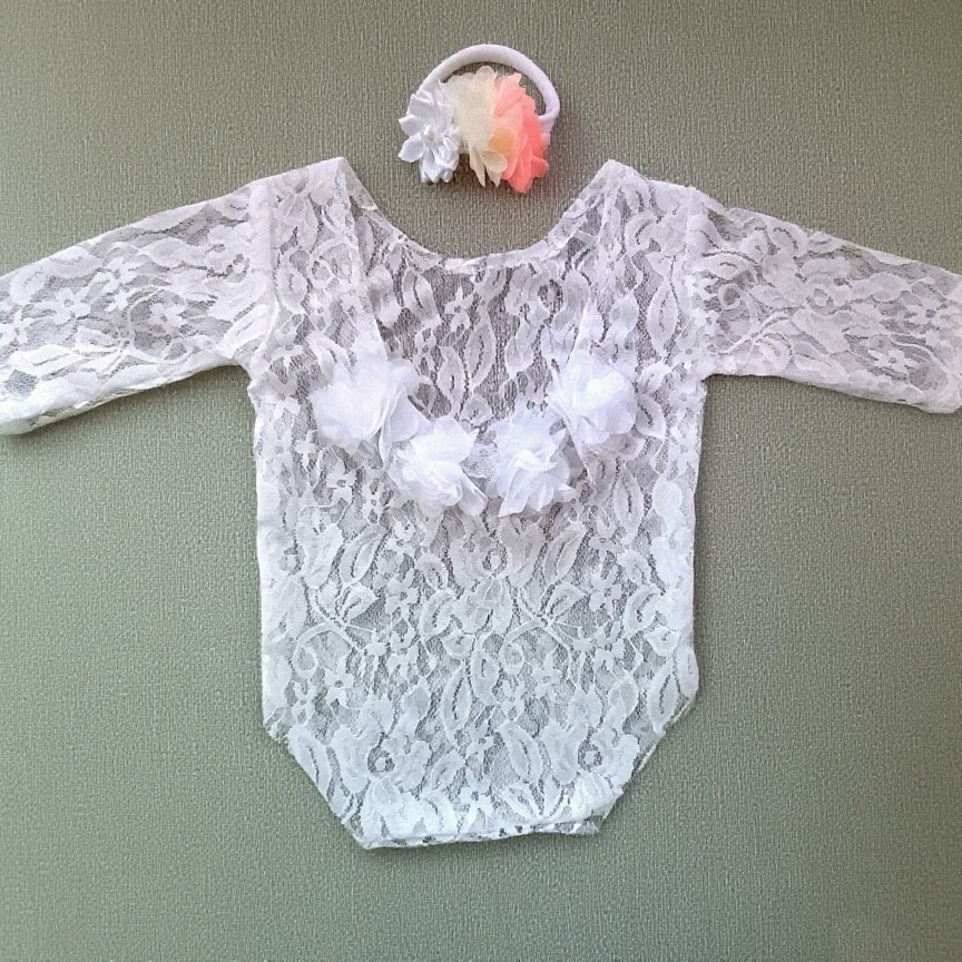 Note:This long sleeve embroidered stretch lace romper is for newborn photos, not everyday wear.