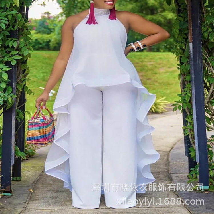 아마존 AliExpress 유럽과 미국 단색 우아한 통근 슬링 패션 민소매 미디 원피스 세트 바지