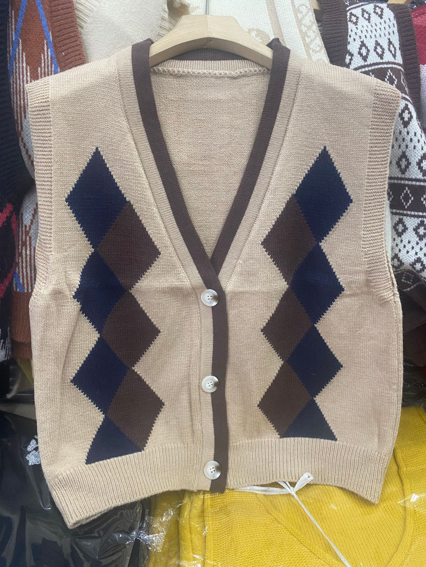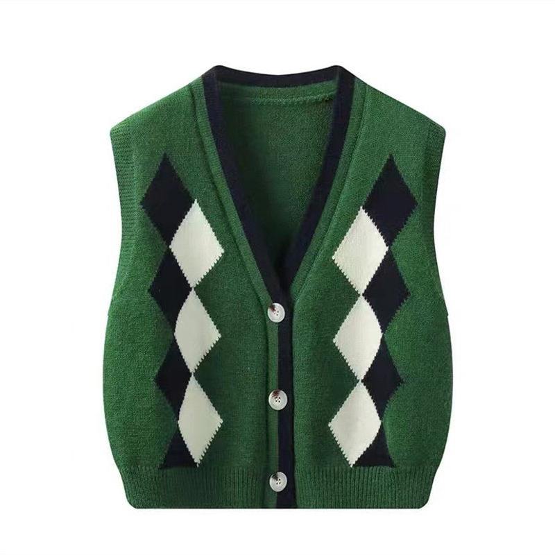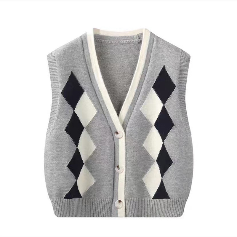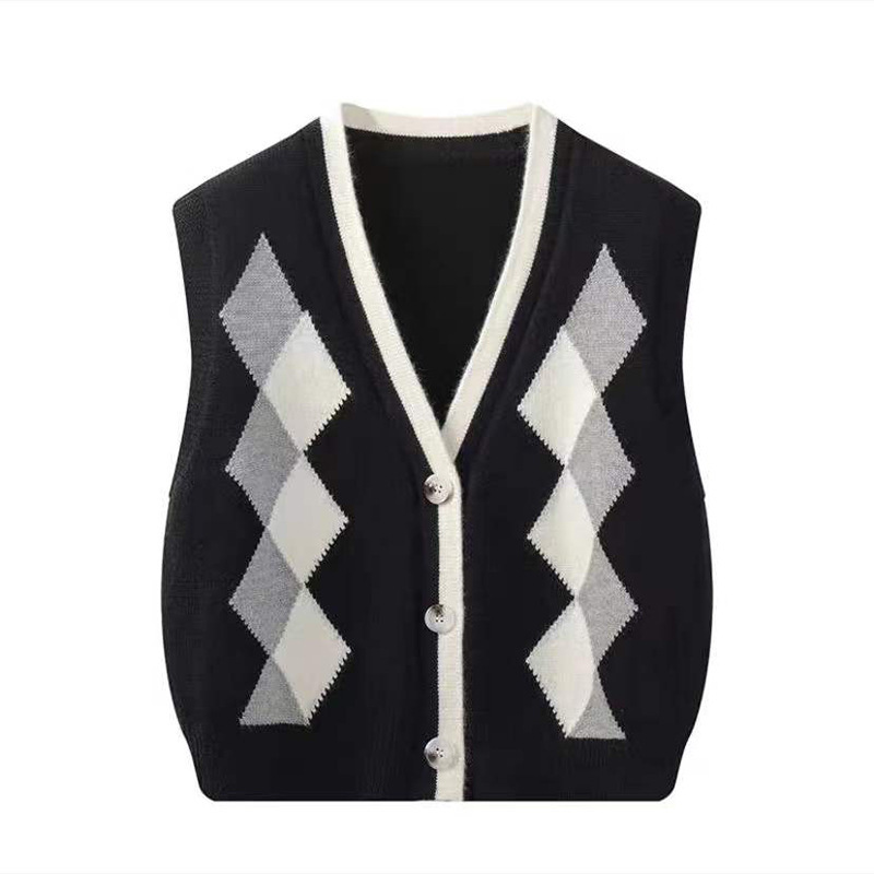 레트로 체크 니트 조끼 여성용 2025년 가을 신상 브이넥 민소매 다용도 패션 조끼 도매스토어 가기