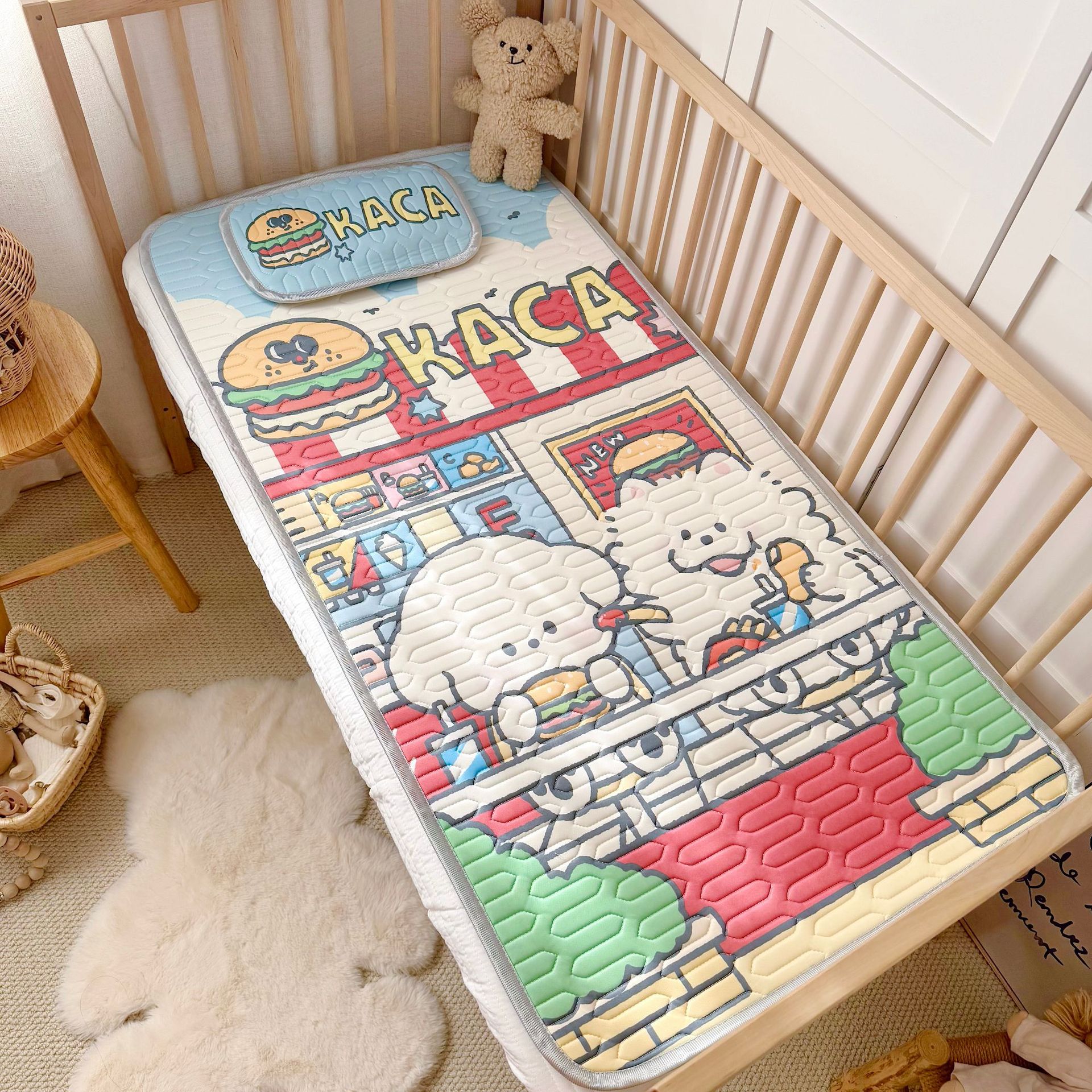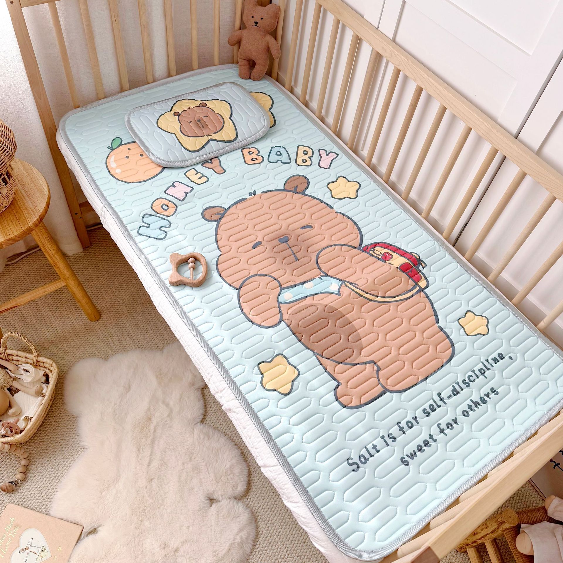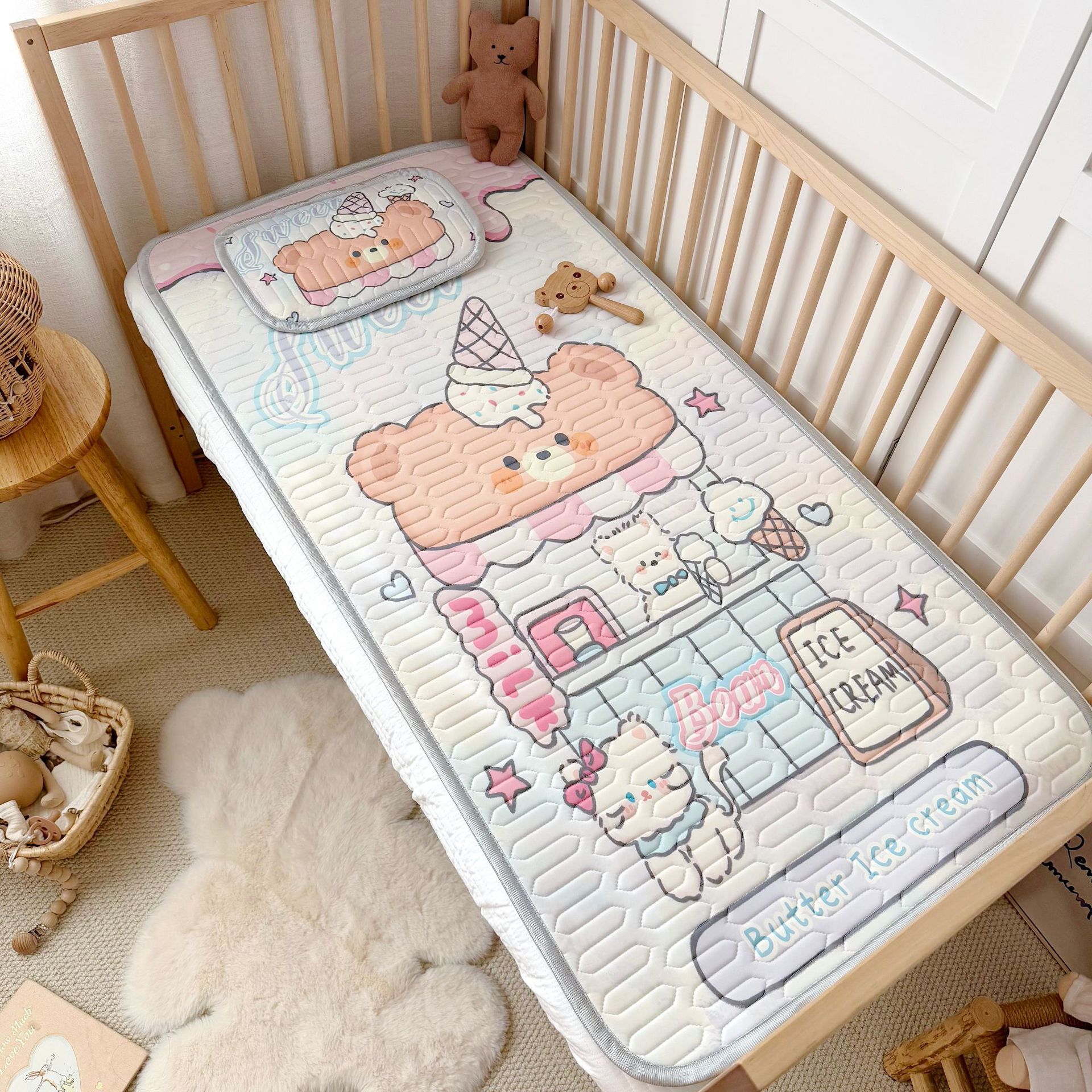 외국 무역 만화 캐릭터 아기 아이들용 아이스 실크 라텍스 매트 투피스 세트 아기 에어컨 매트 매트리스 라텍스 매트스토어 가기
