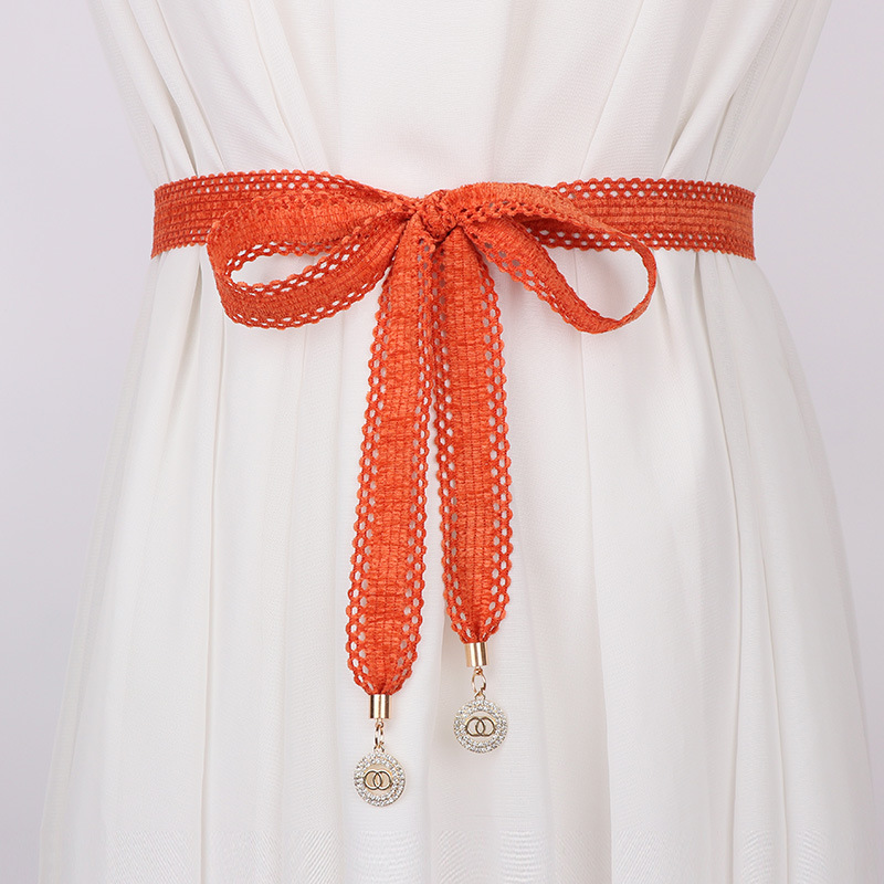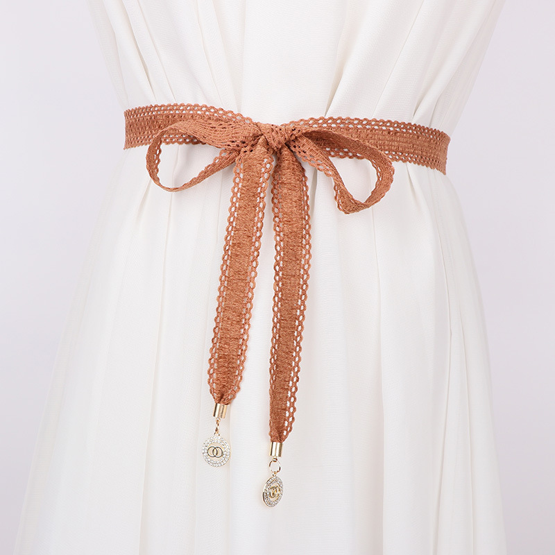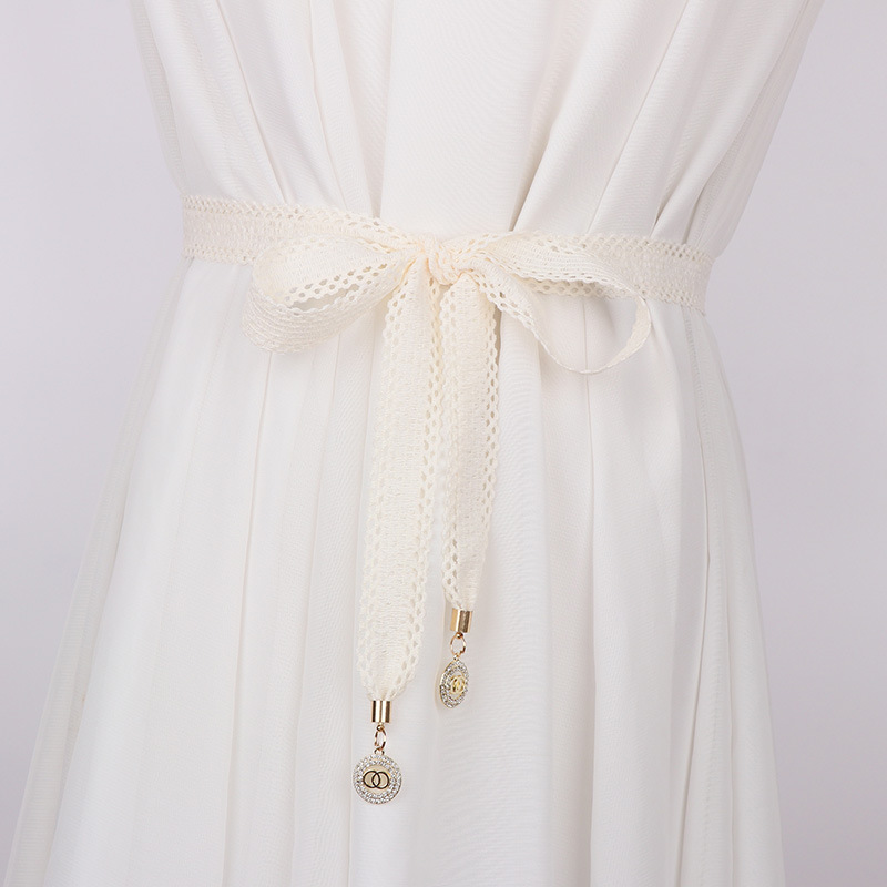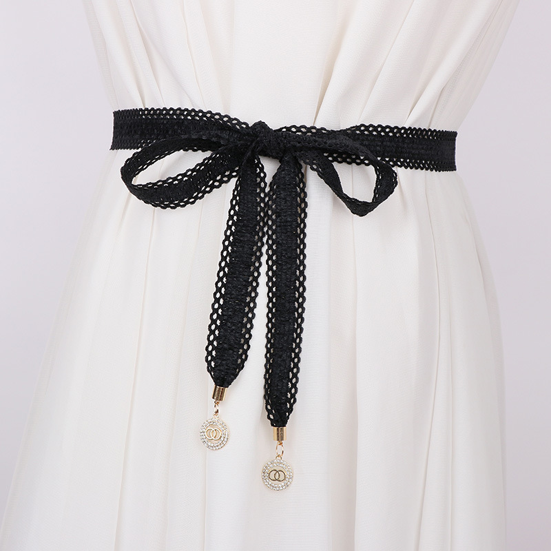 새로운 숙녀 달콤한 레이스 천 벨트 모든 일치 장식 작은 허리 로프 스커트 라인 석 패션 보우 스커트