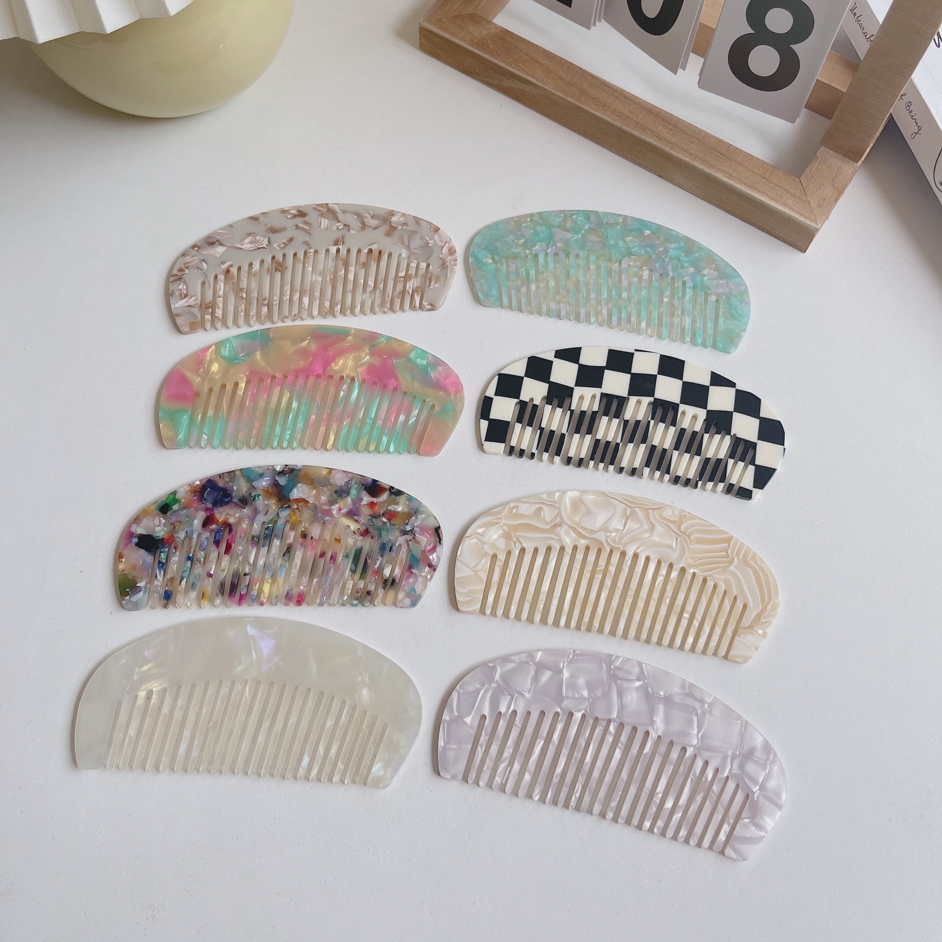 새로운 유럽과 미국의 뜨거운 판매 아세트산 플레이트 머리 빗 넓은 치아 휴대용 빗 정전기 방지 머리 빗 대리석 패턴 머리 빗스토어 가기