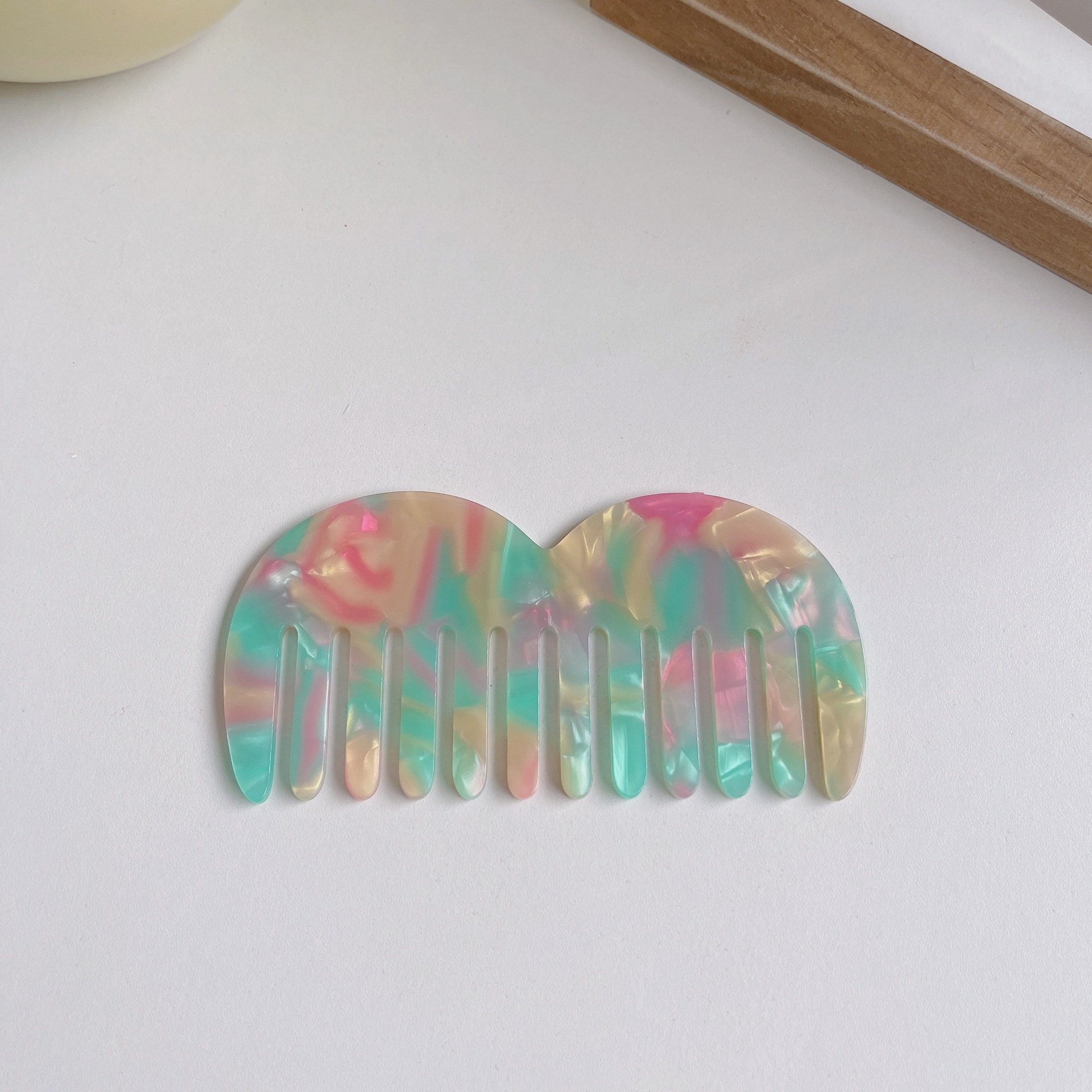 새로운 유럽과 미국의 뜨거운 판매 아세트산 플레이트 머리 빗 넓은 치아 휴대용 빗 정전기 방지 머리 빗 대리석 패턴 머리 빗