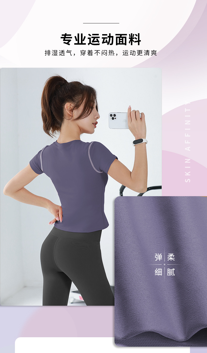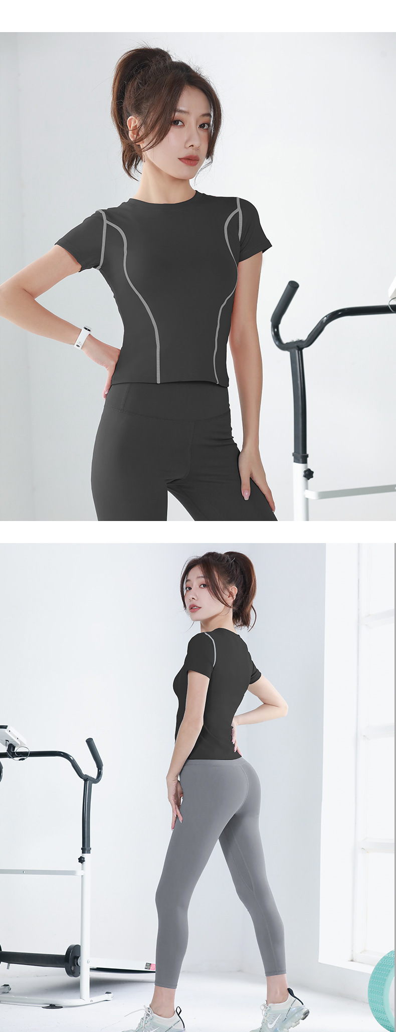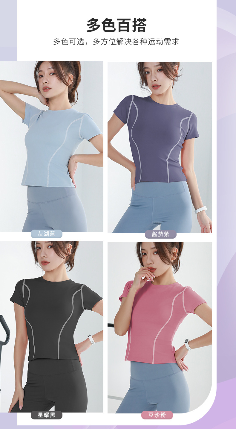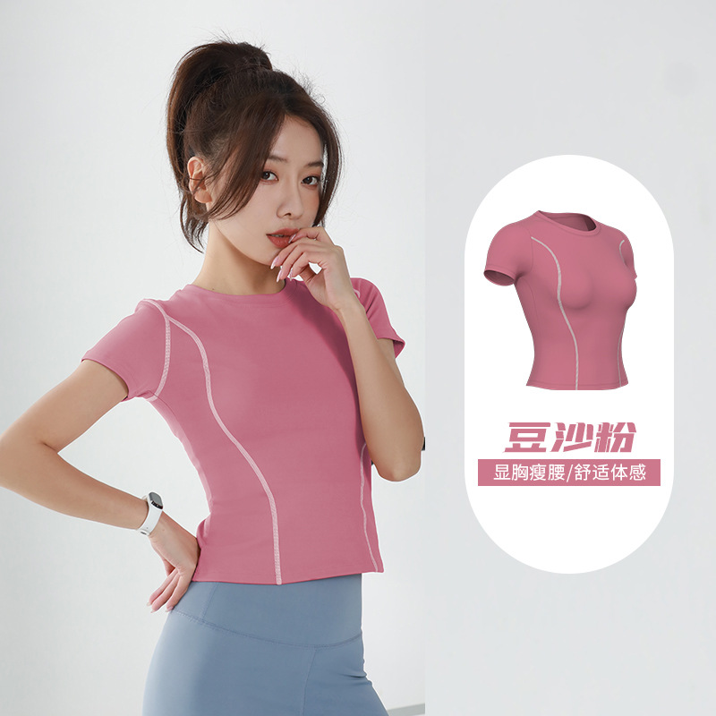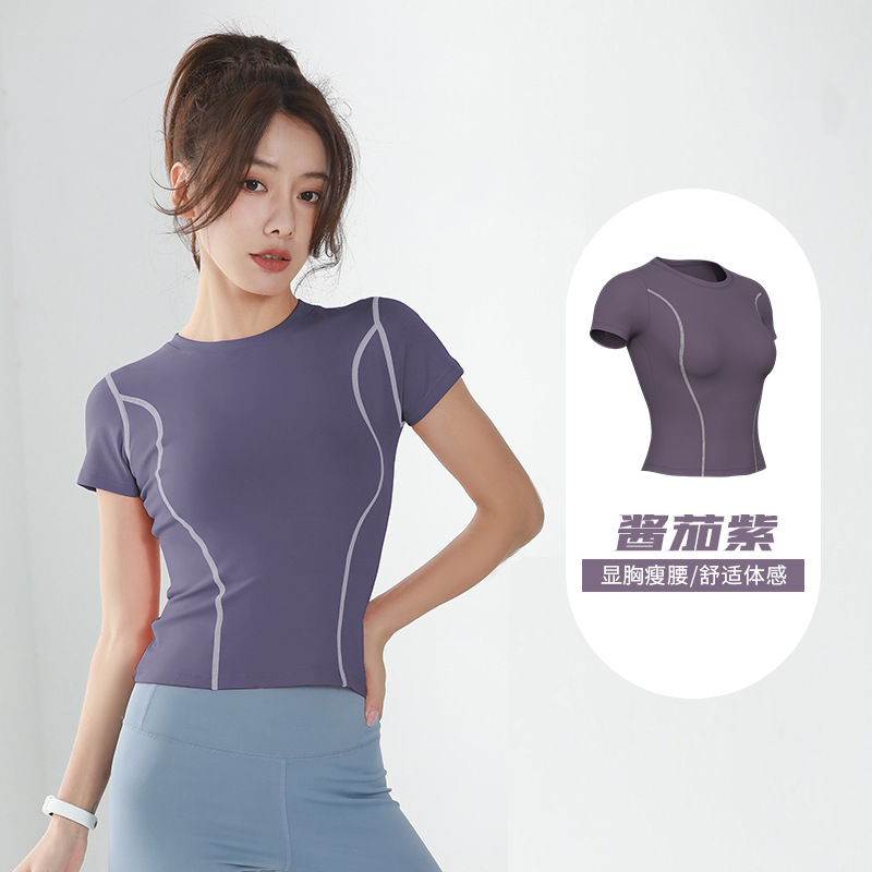 Juyitang 반팔 요가 탑 더블 아크 슬림 핏 슬리밍 빠른 건조 통기성 달리기 피트니스 의류 여성용 티셔츠